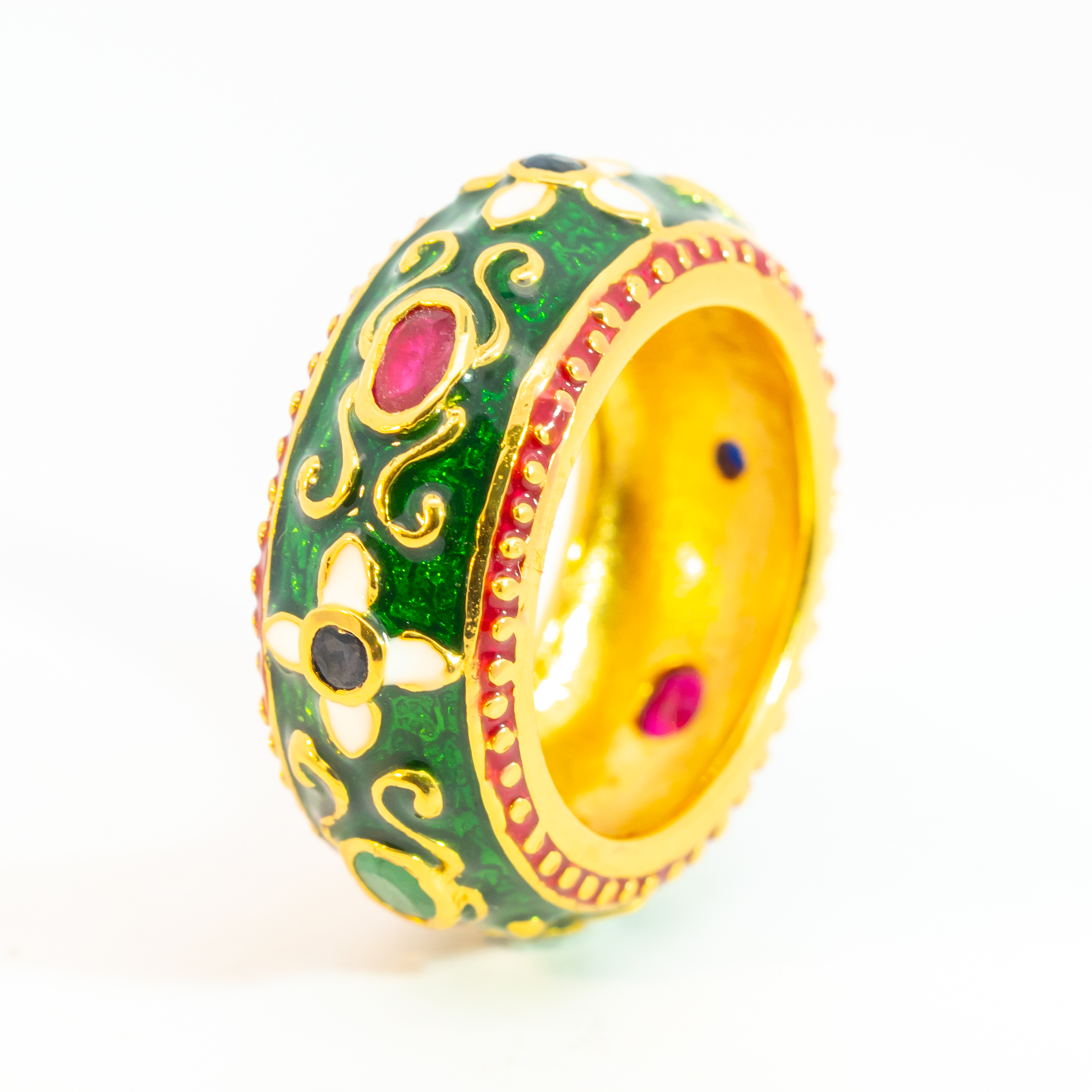 Sterling silver jewelry with 22k gold plated, natural stone and enamel.