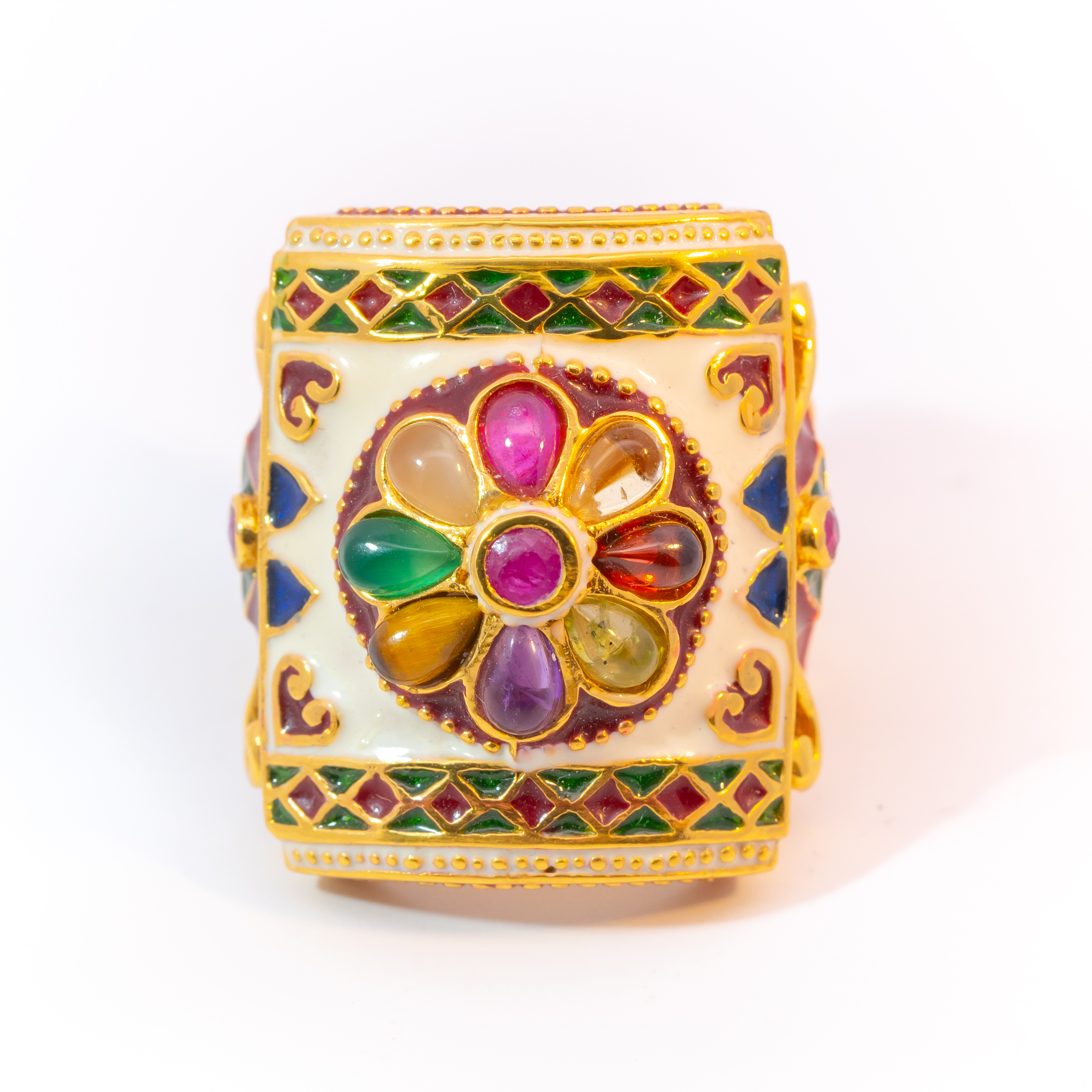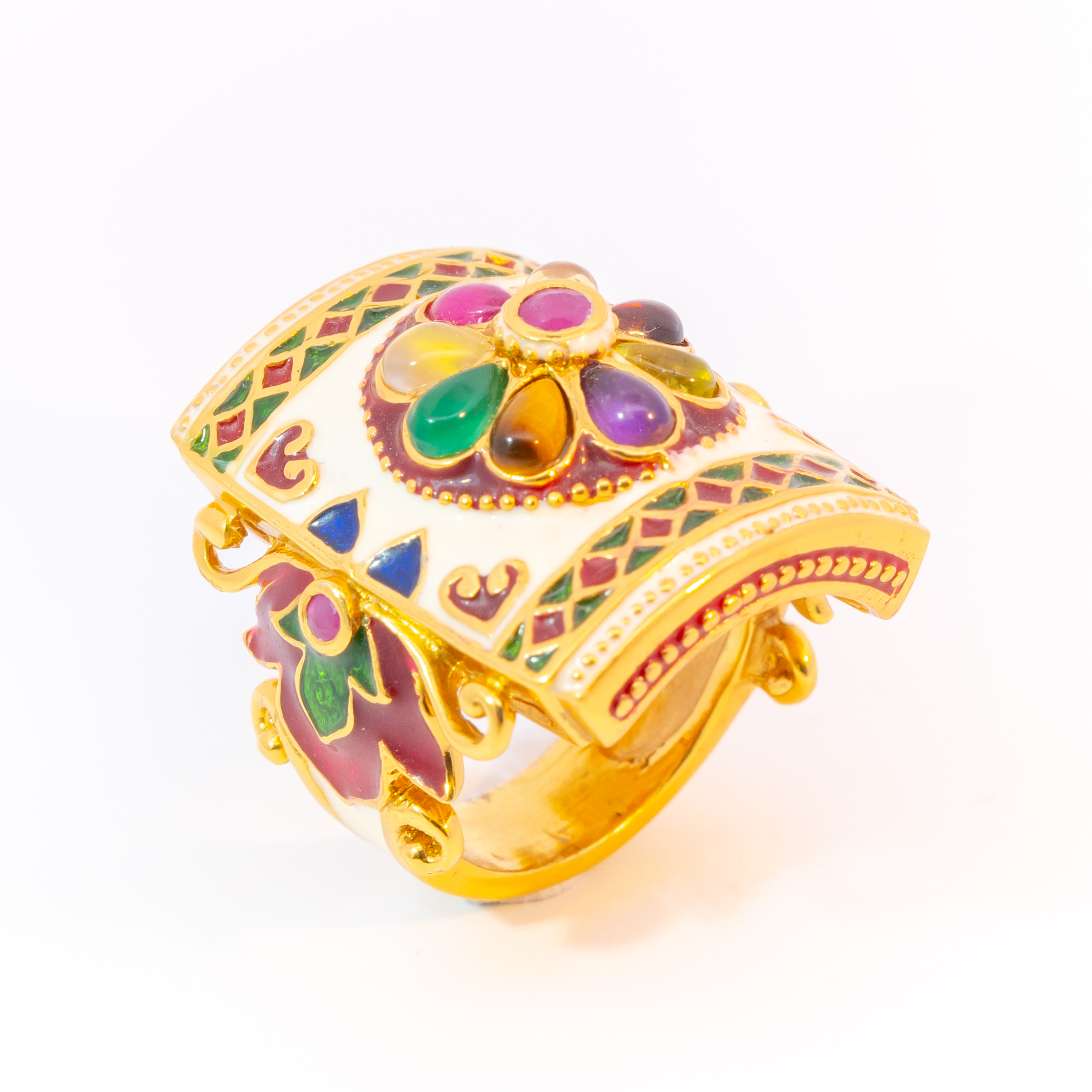 Sterling silver jewelry with 22k gold plated, natural stone and enamel.