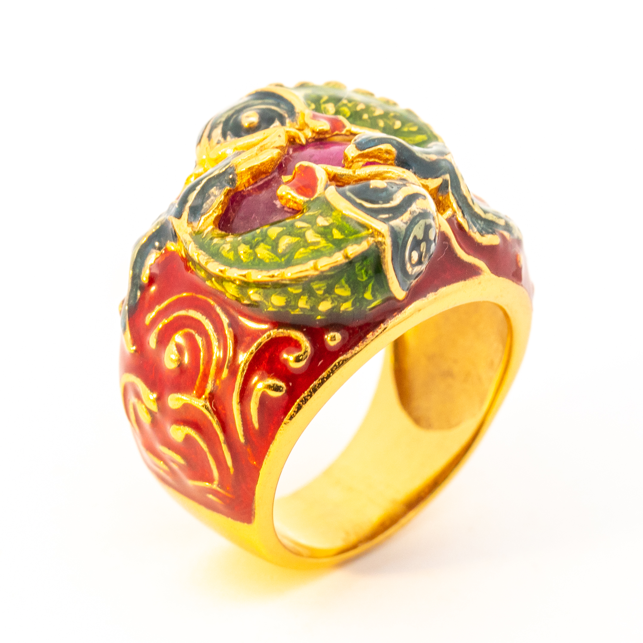 Sterling silver jewelry with 22k gold plated, natural stone and enamel.