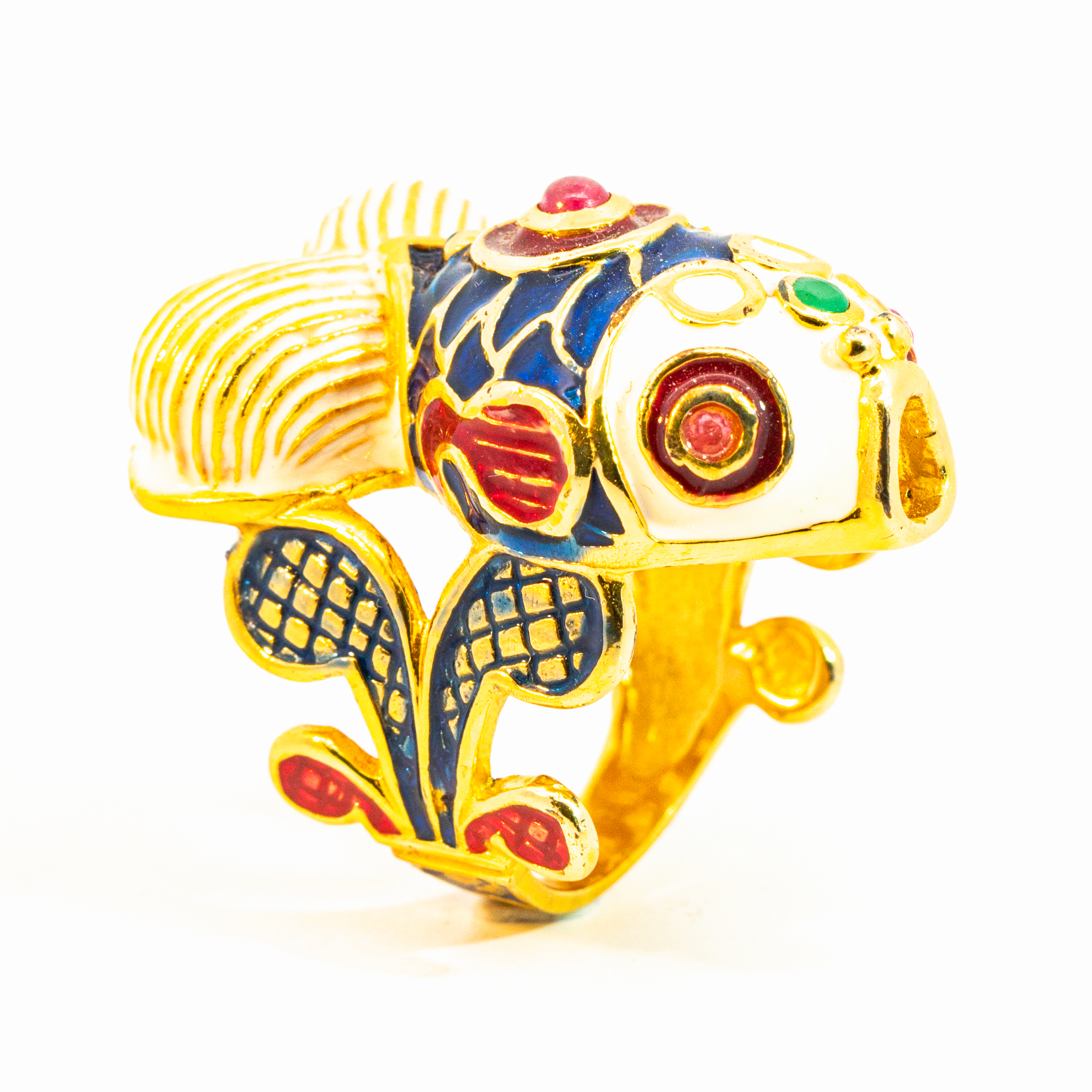 Sterling silver jewelry with 22k gold plated, natural stone and enamel.