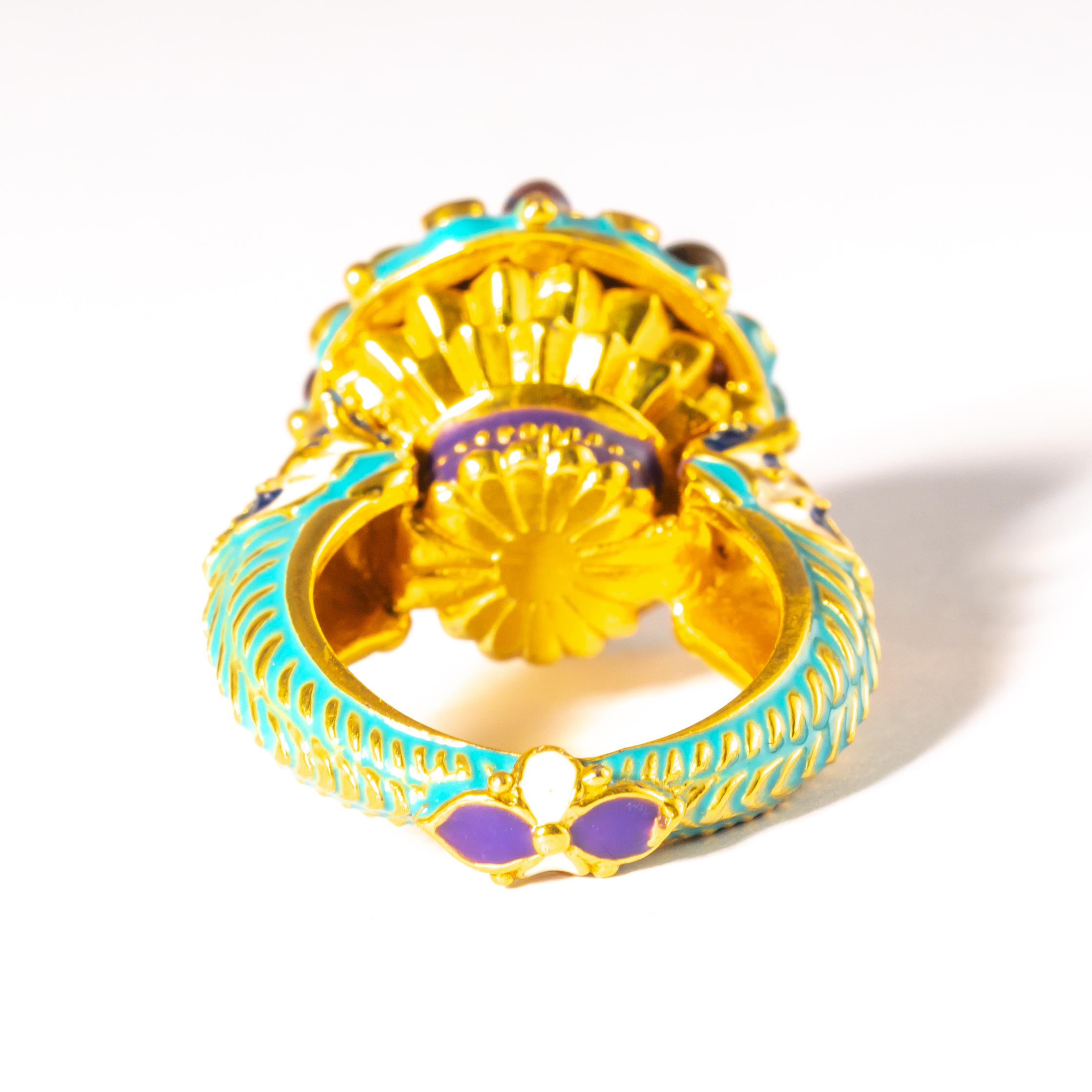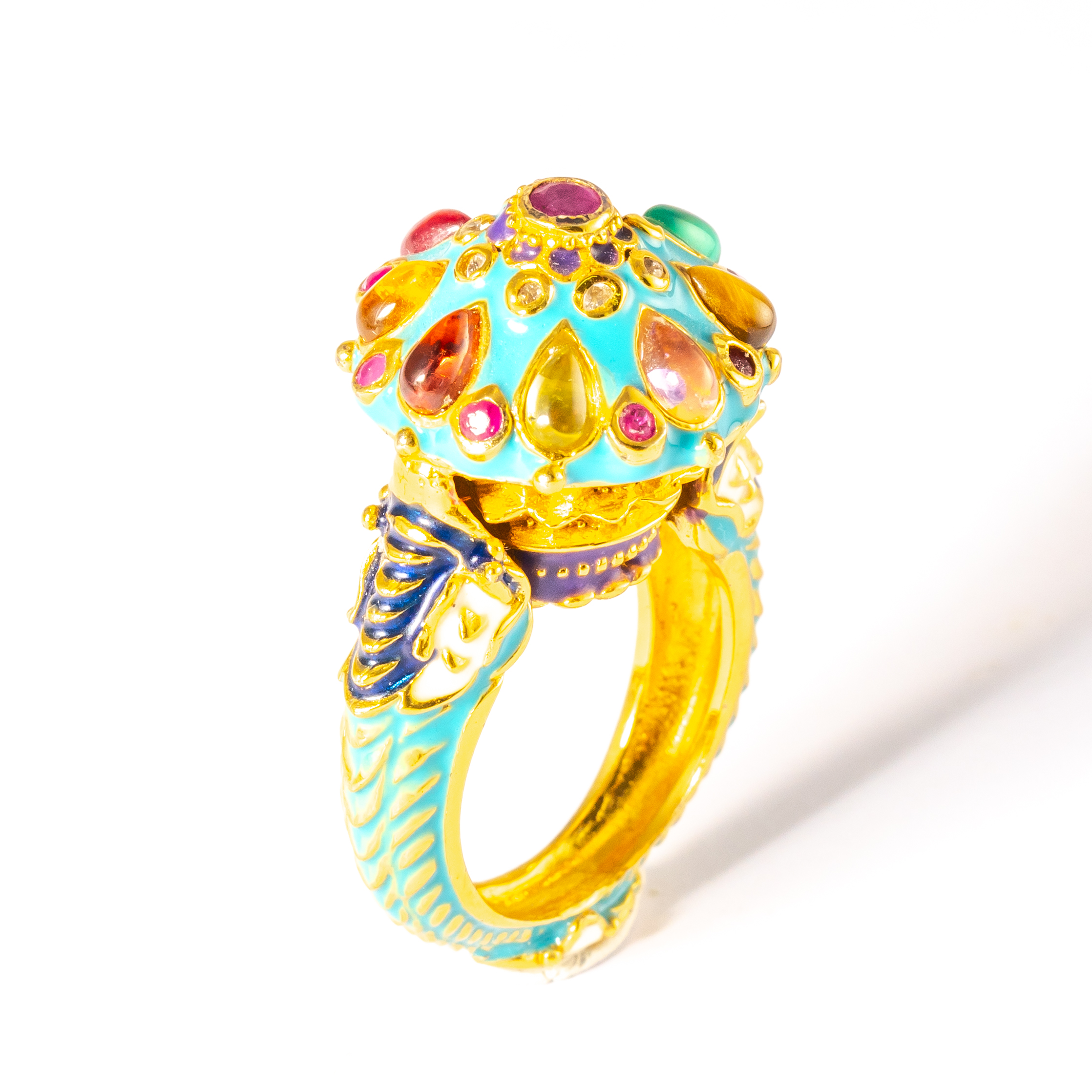 Sterling silver jewelry with 22k gold plated, natural stone and enamel.