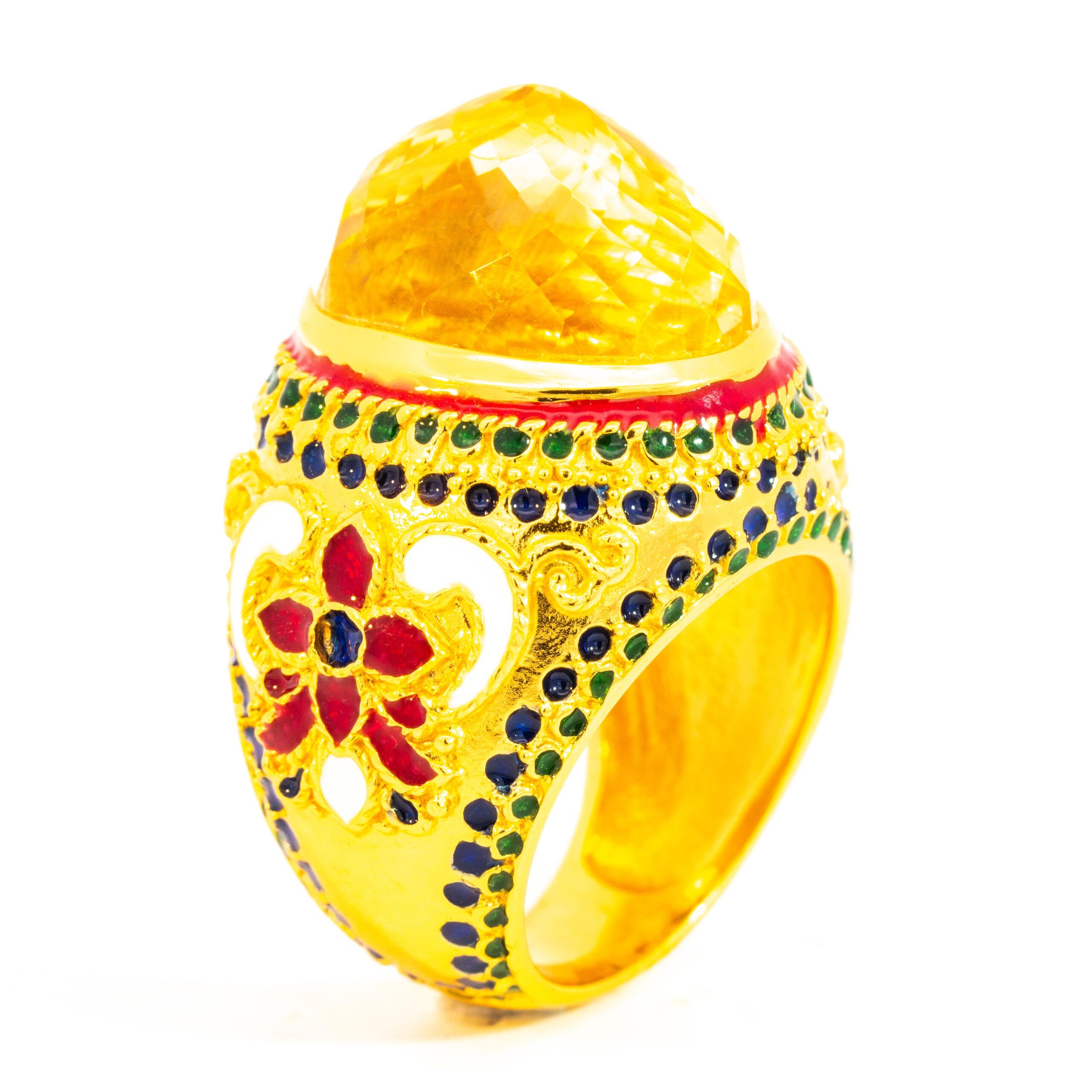 Sterling silver jewelry with 22k gold plated, natural stone and enamel.