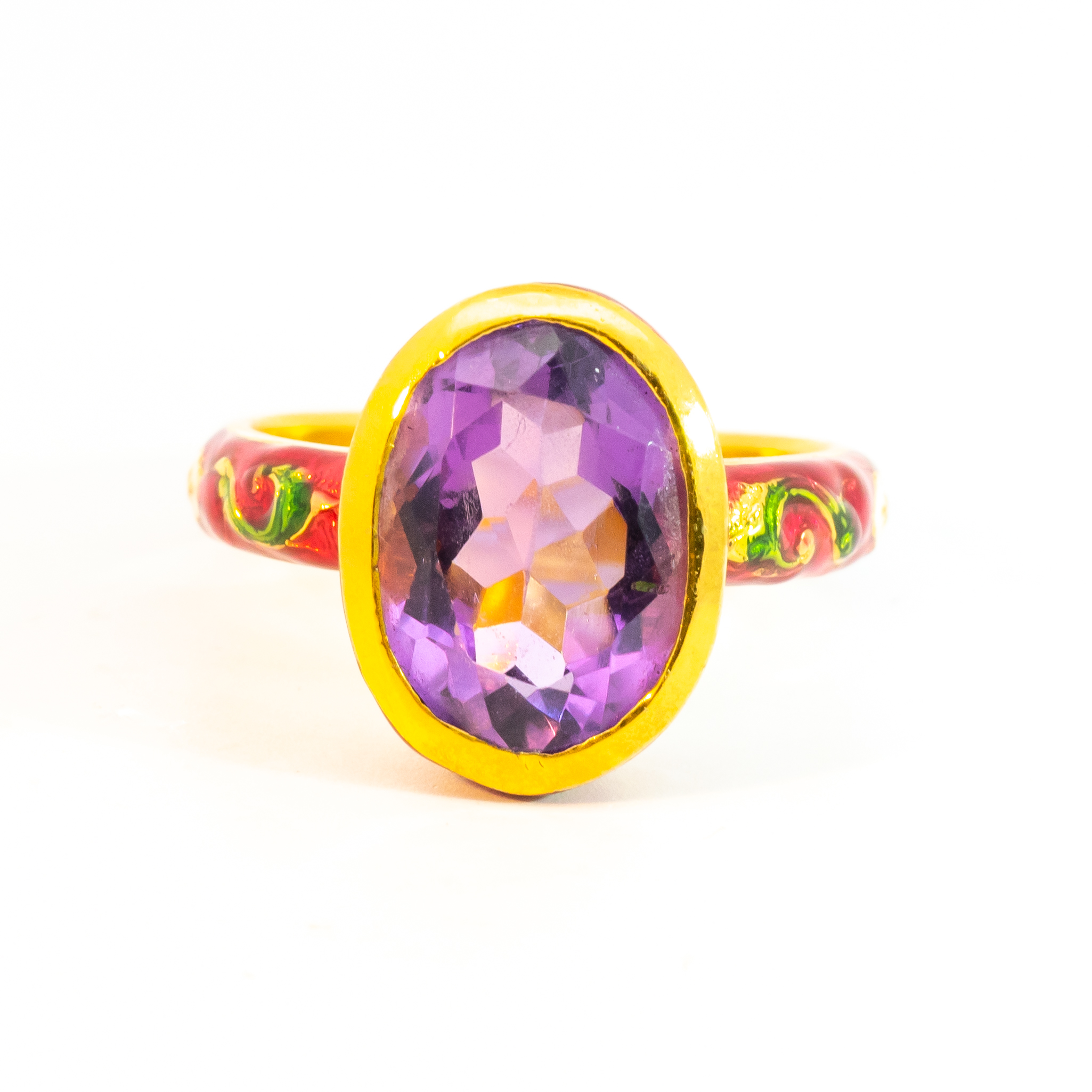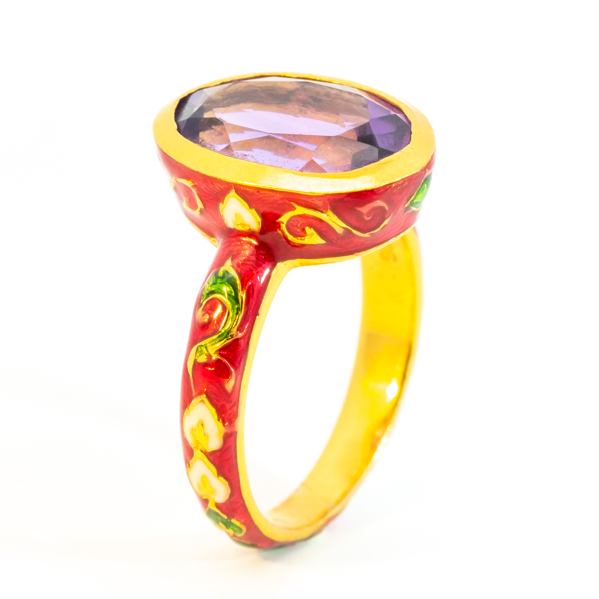 Sterling silver jewelry with 22k gold plated, natural stone and enamel.