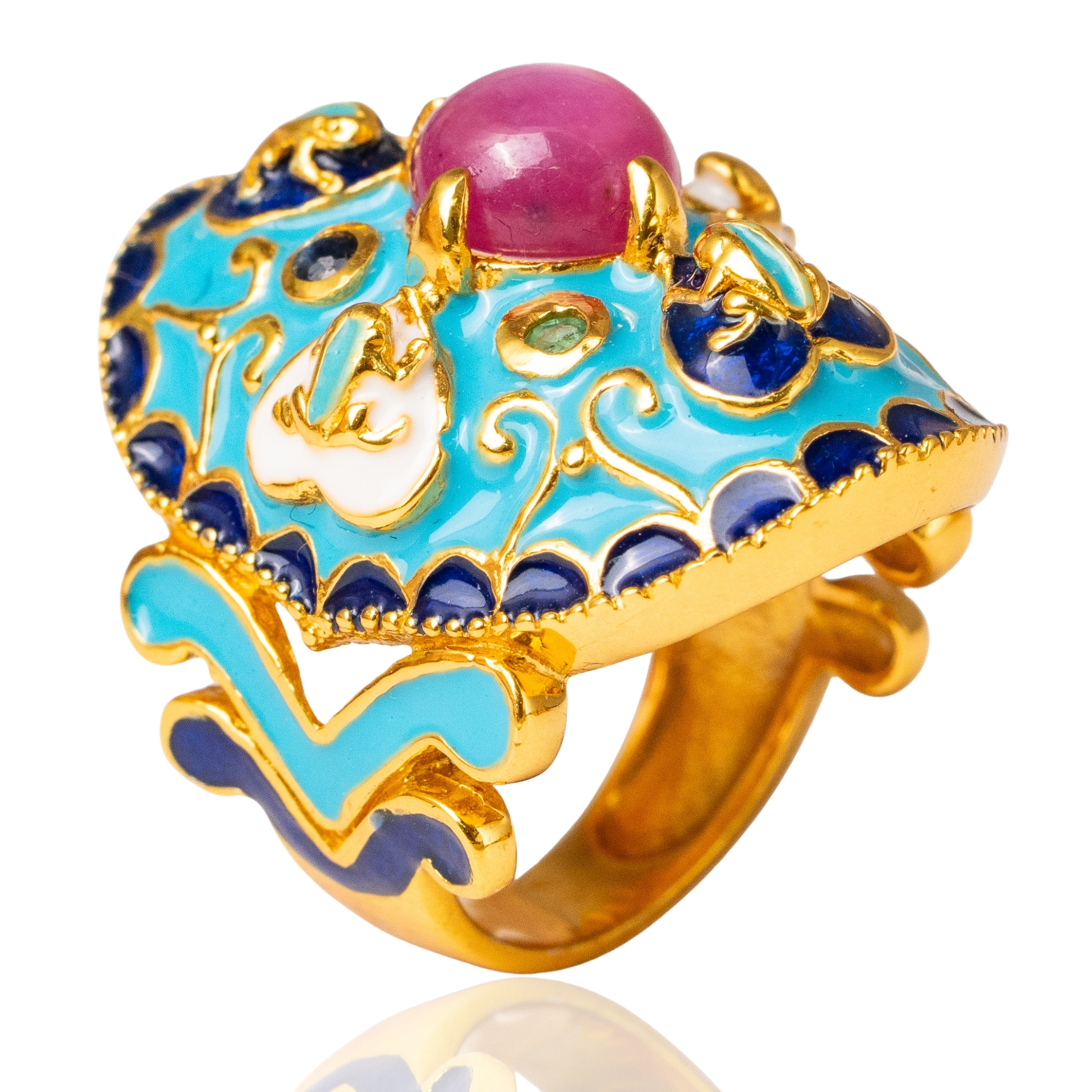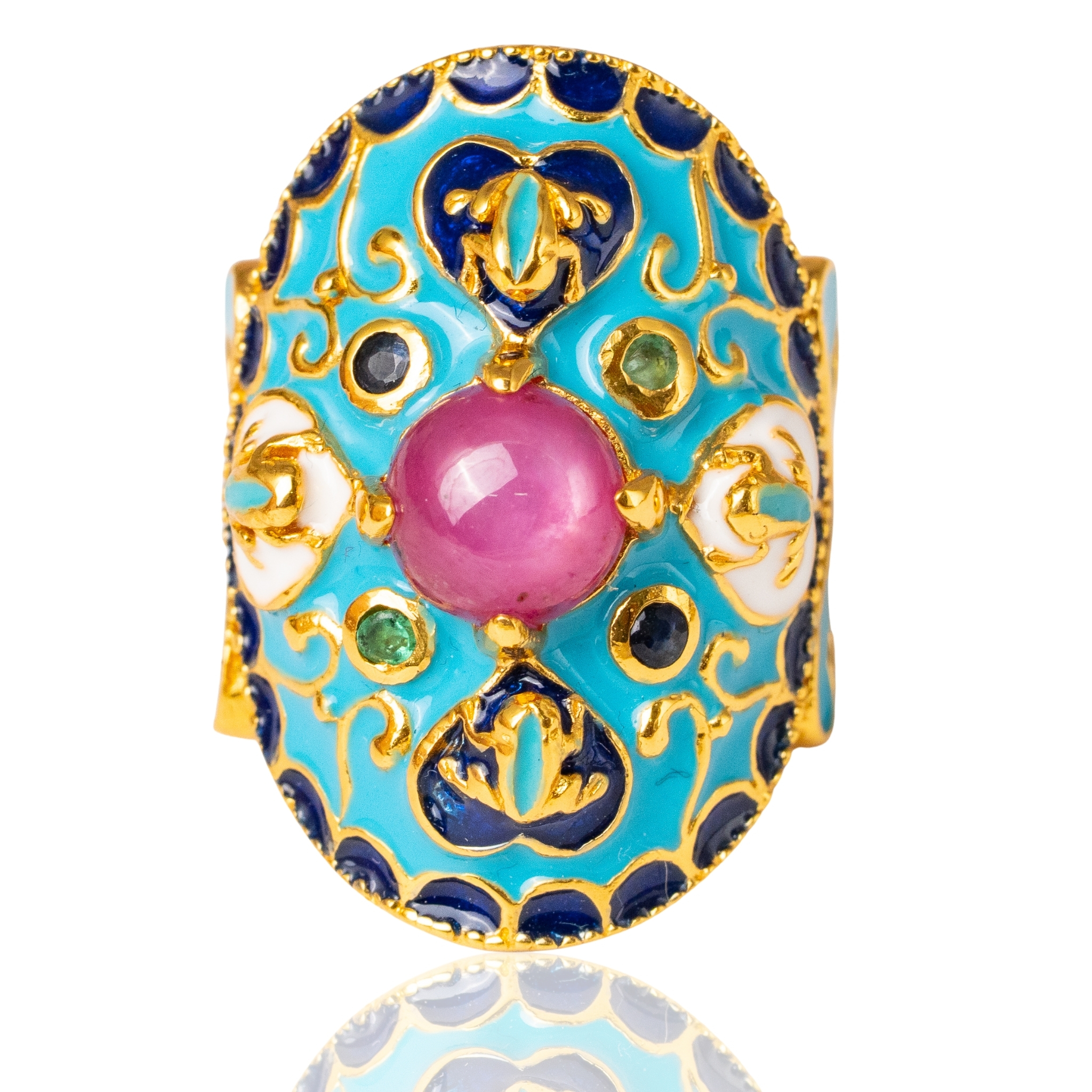 Sterling silver jewelry with 22k gold plated, natural stone and enamel.