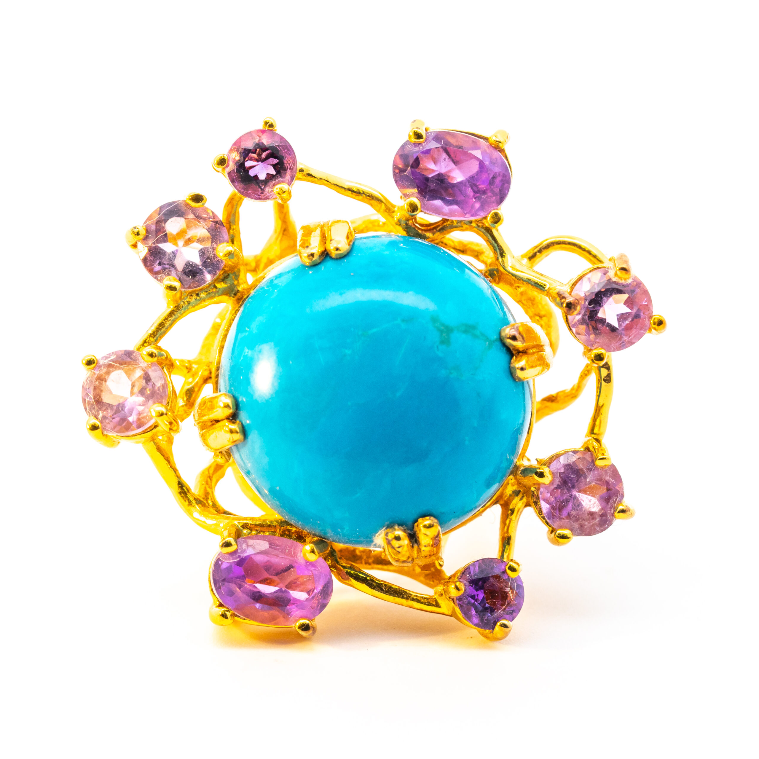 Sterling silver jewelry with 22k gold plated, natural stone and enamel.