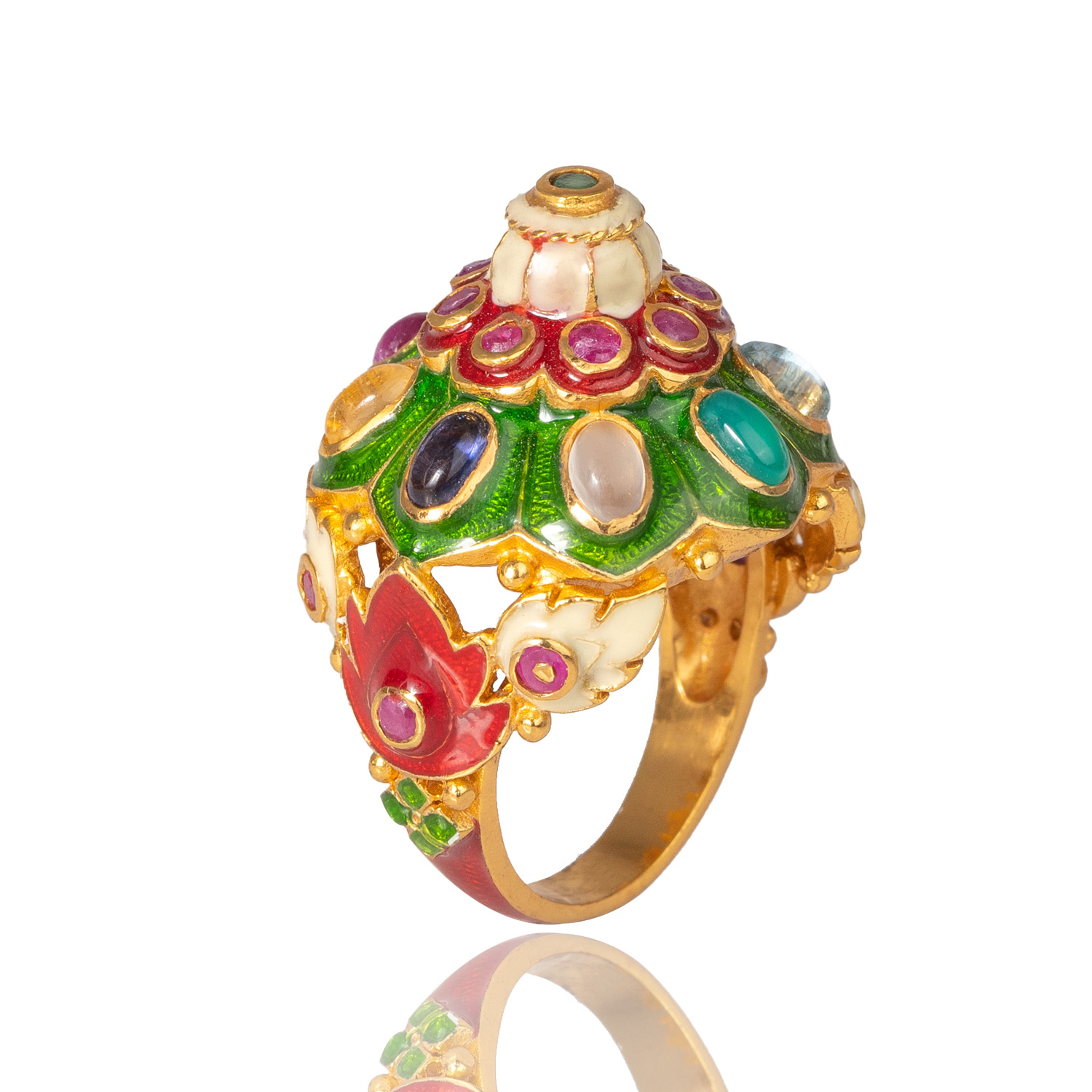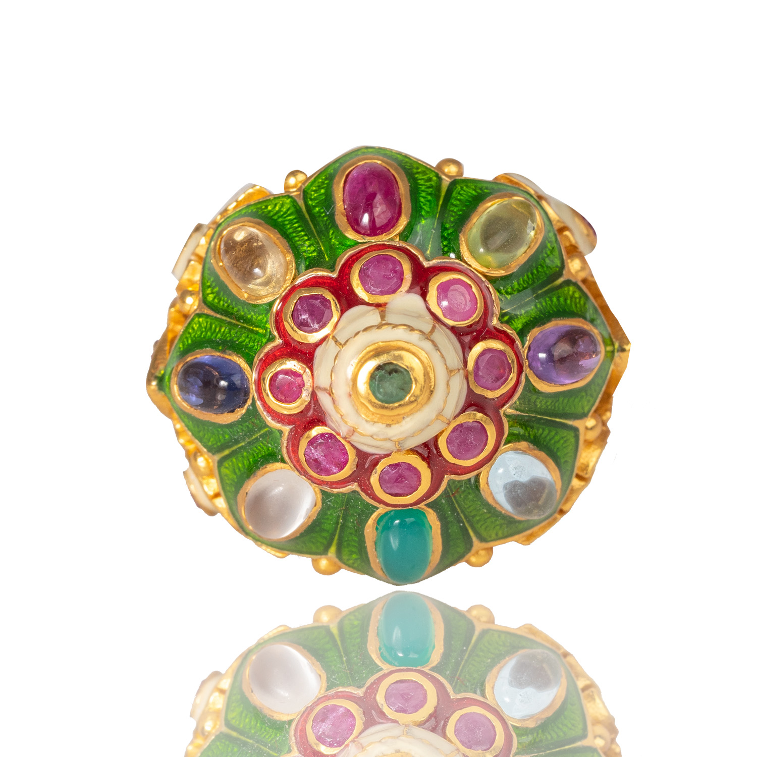 Sterling silver jewelry with 22k gold plated, natural stone and enamel.