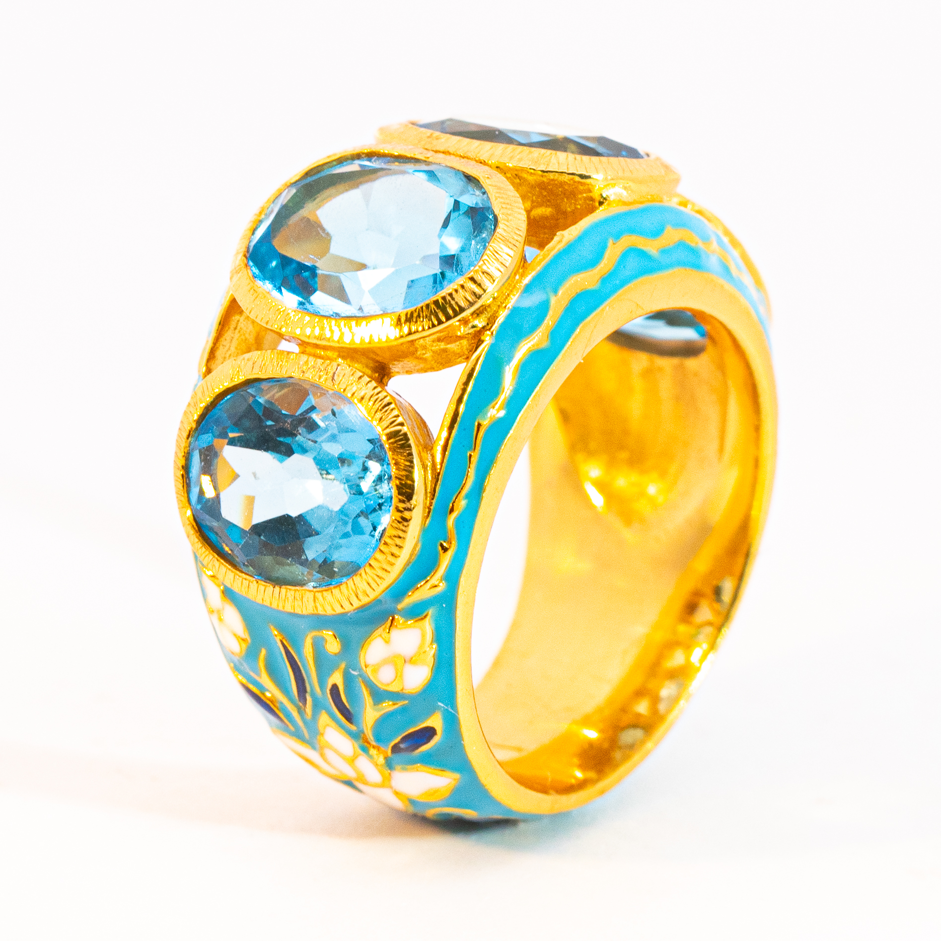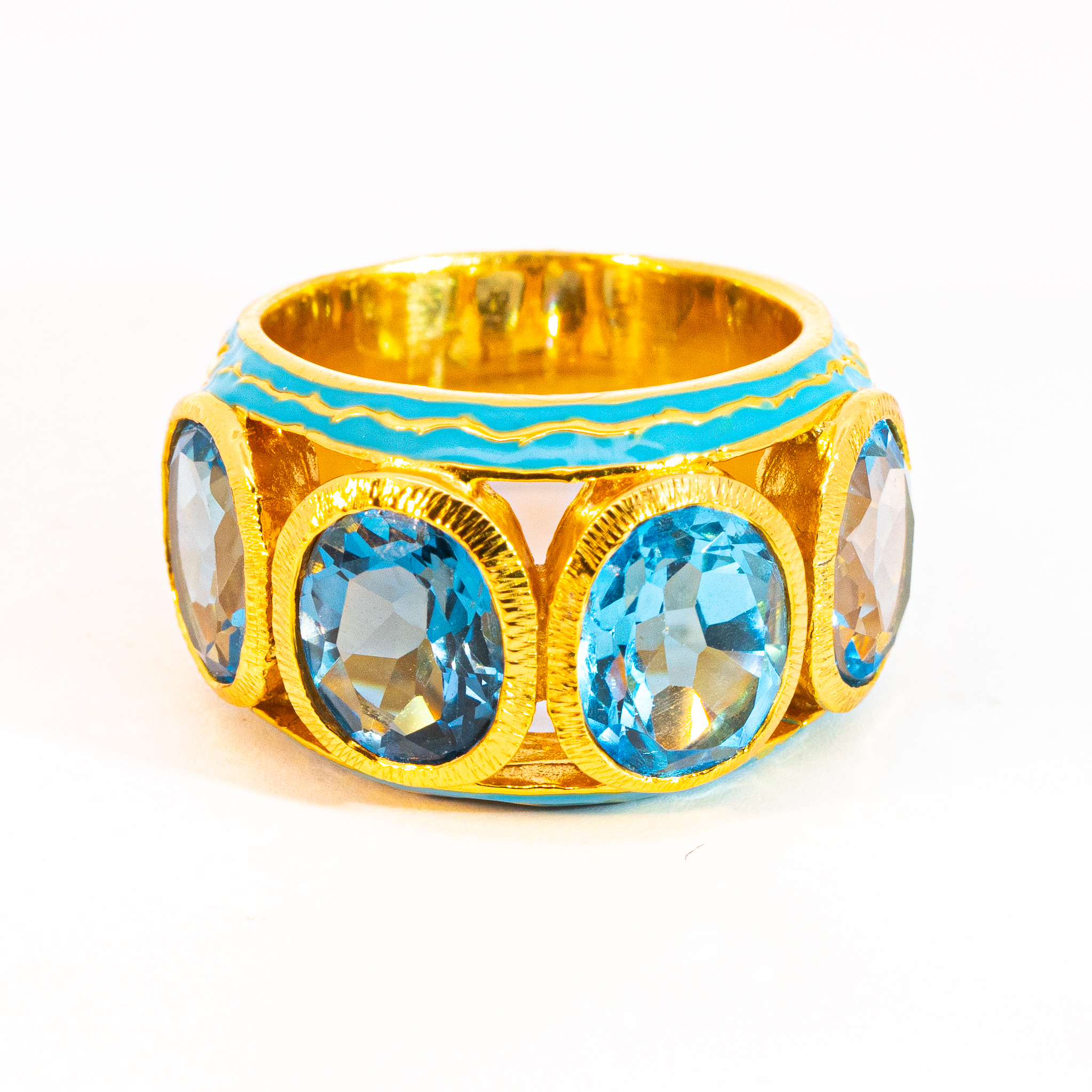 Sterling silver jewelry with 22k gold plated, natural stone and enamel.