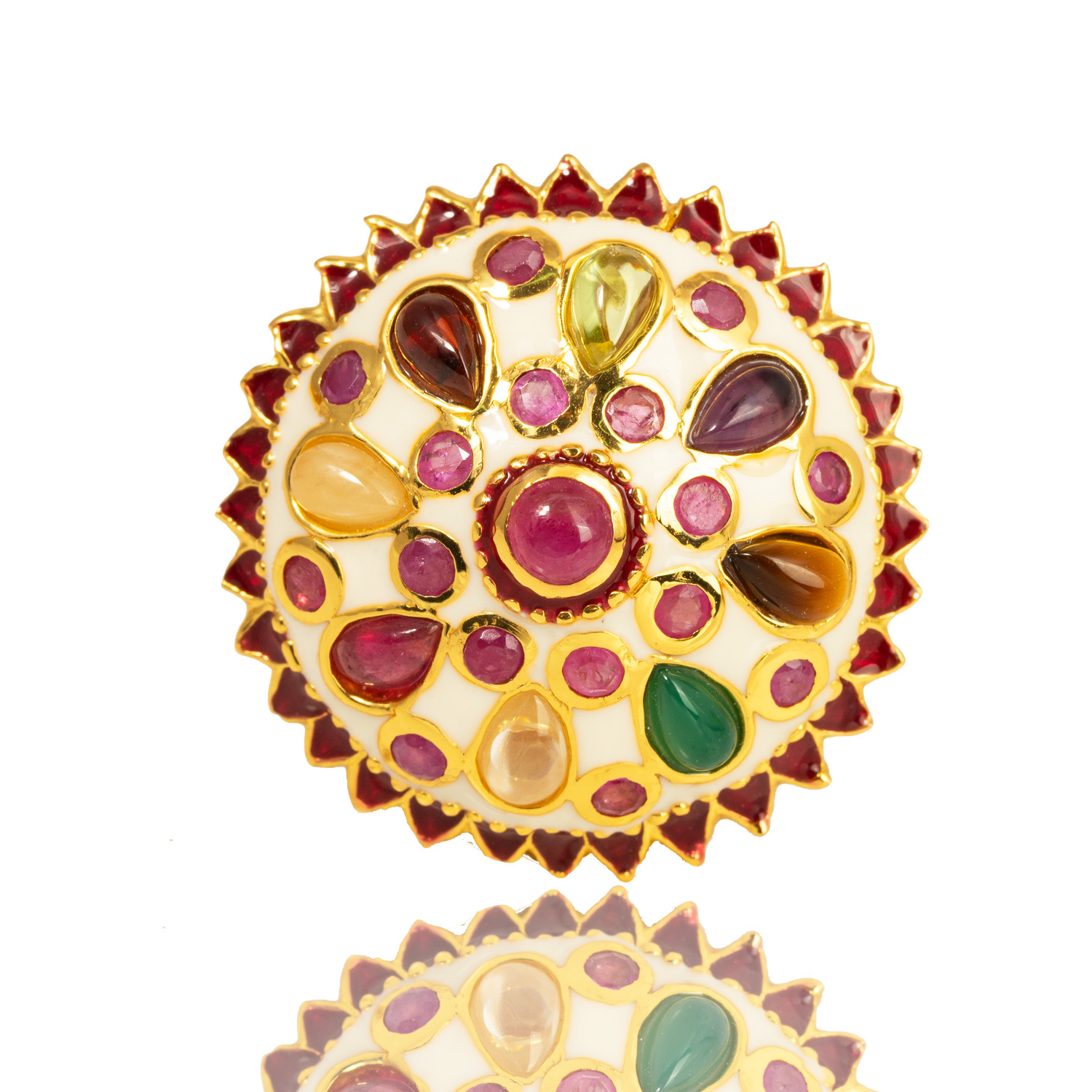 Sterling silver jewelry with 22k gold plated, natural stone and enamel.