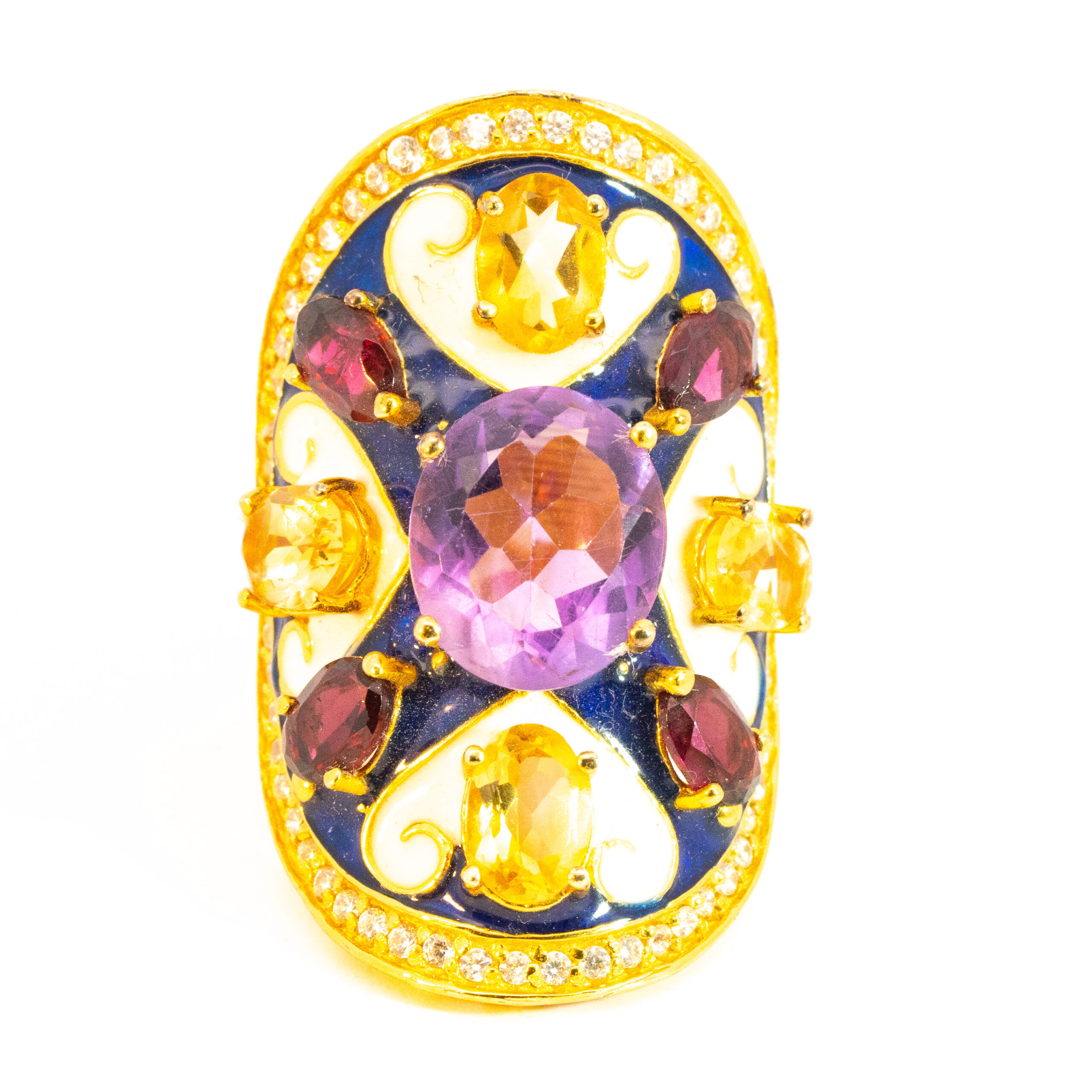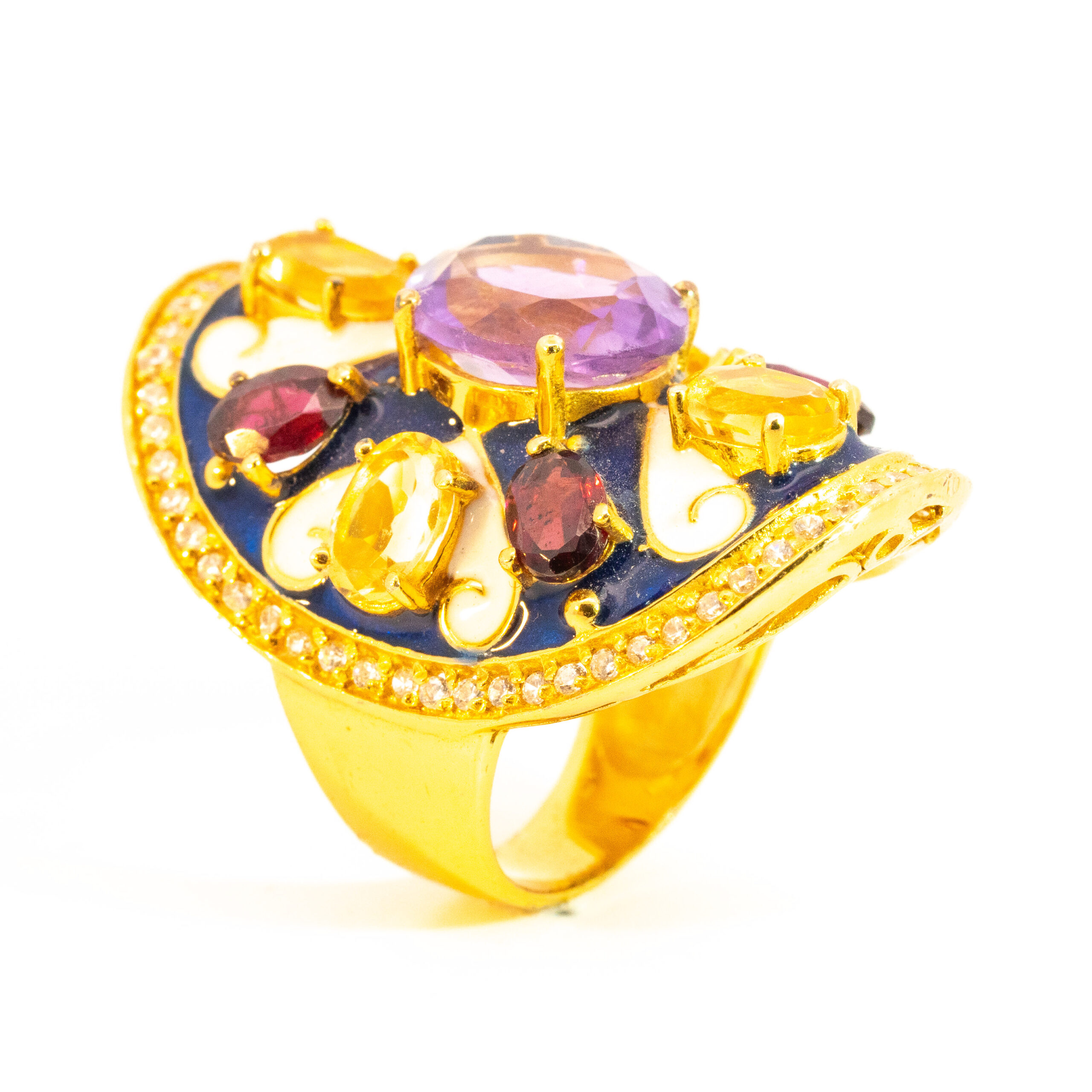 Sterling silver jewelry with 22k gold plated, natural stone and enamel.