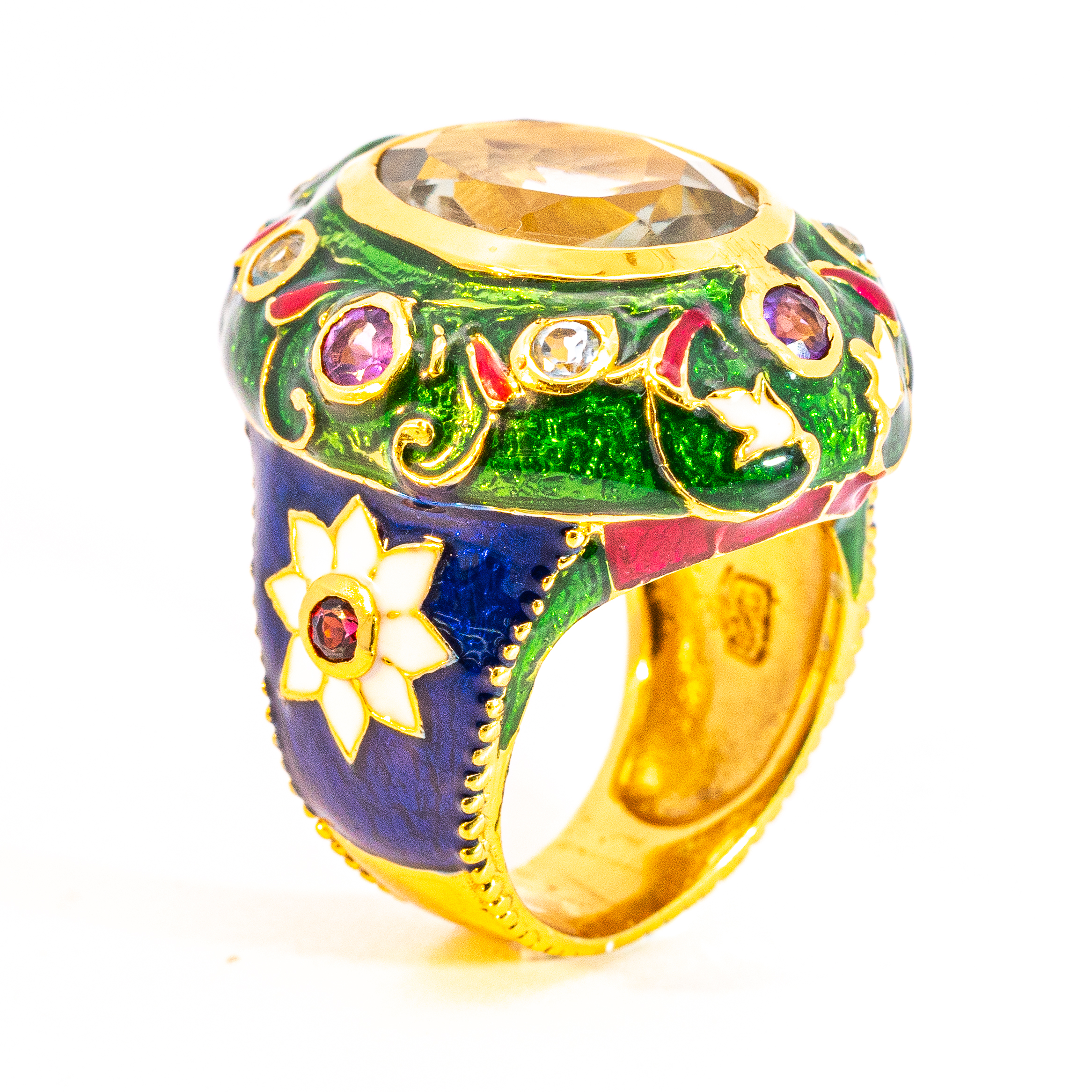 Sterling silver jewelry with 22k gold plated, natural stone and enamel.