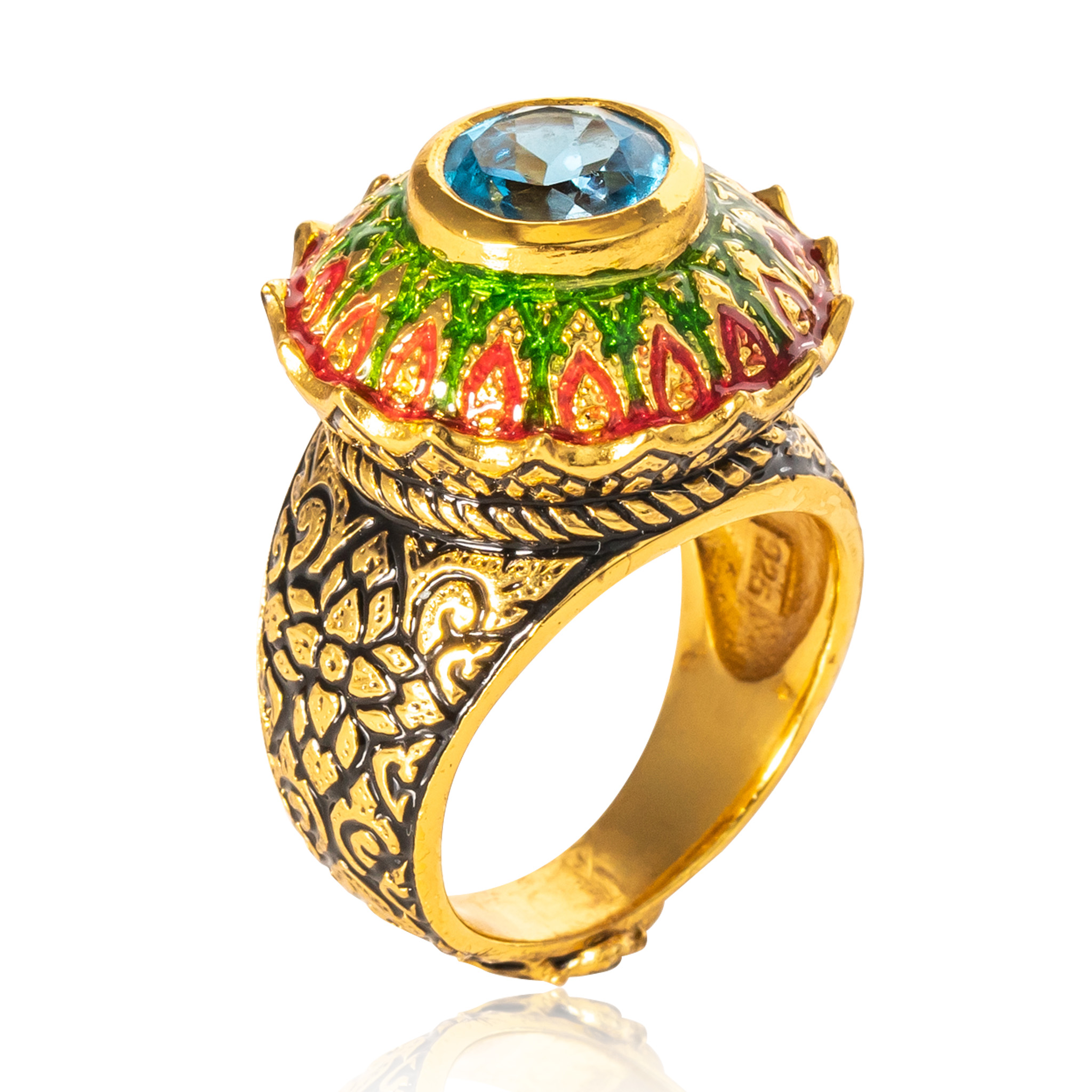 Sterling silver jewelry with 22k gold plated, natural stone and enamel.