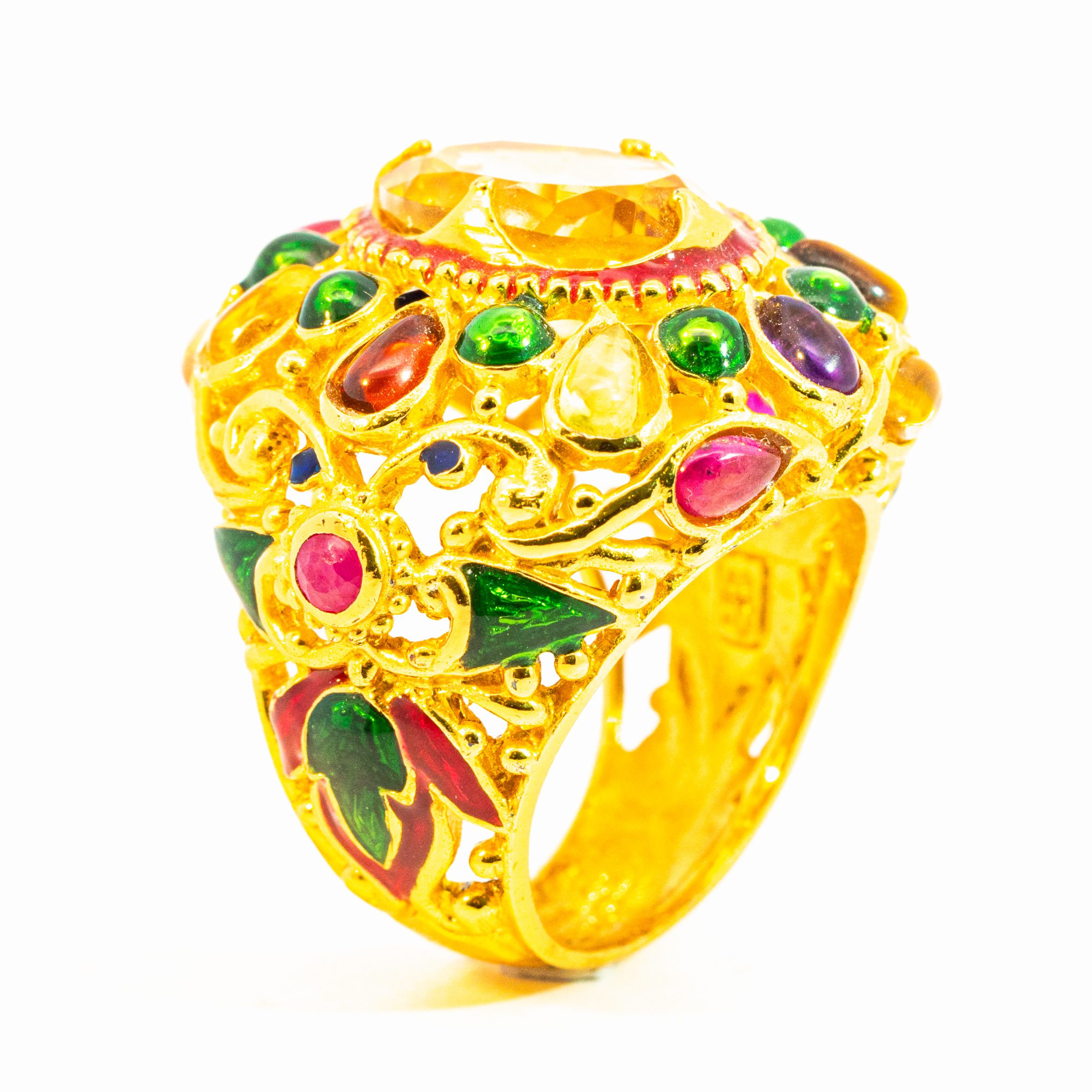 Sterling silver jewelry with 22k gold plated, natural stone and enamel.