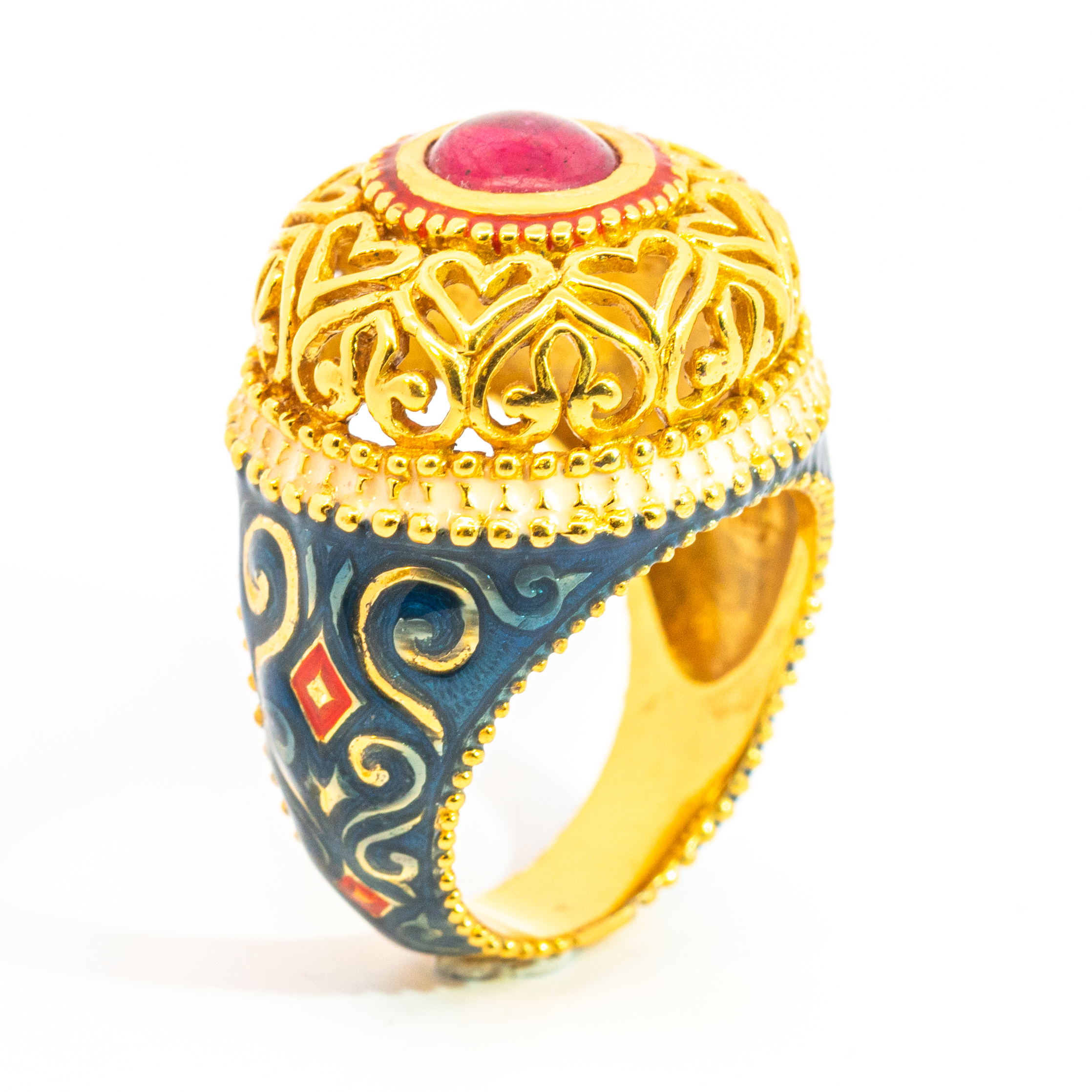 Sterling silver jewelry with 22k gold plated, natural stone and enamel.
