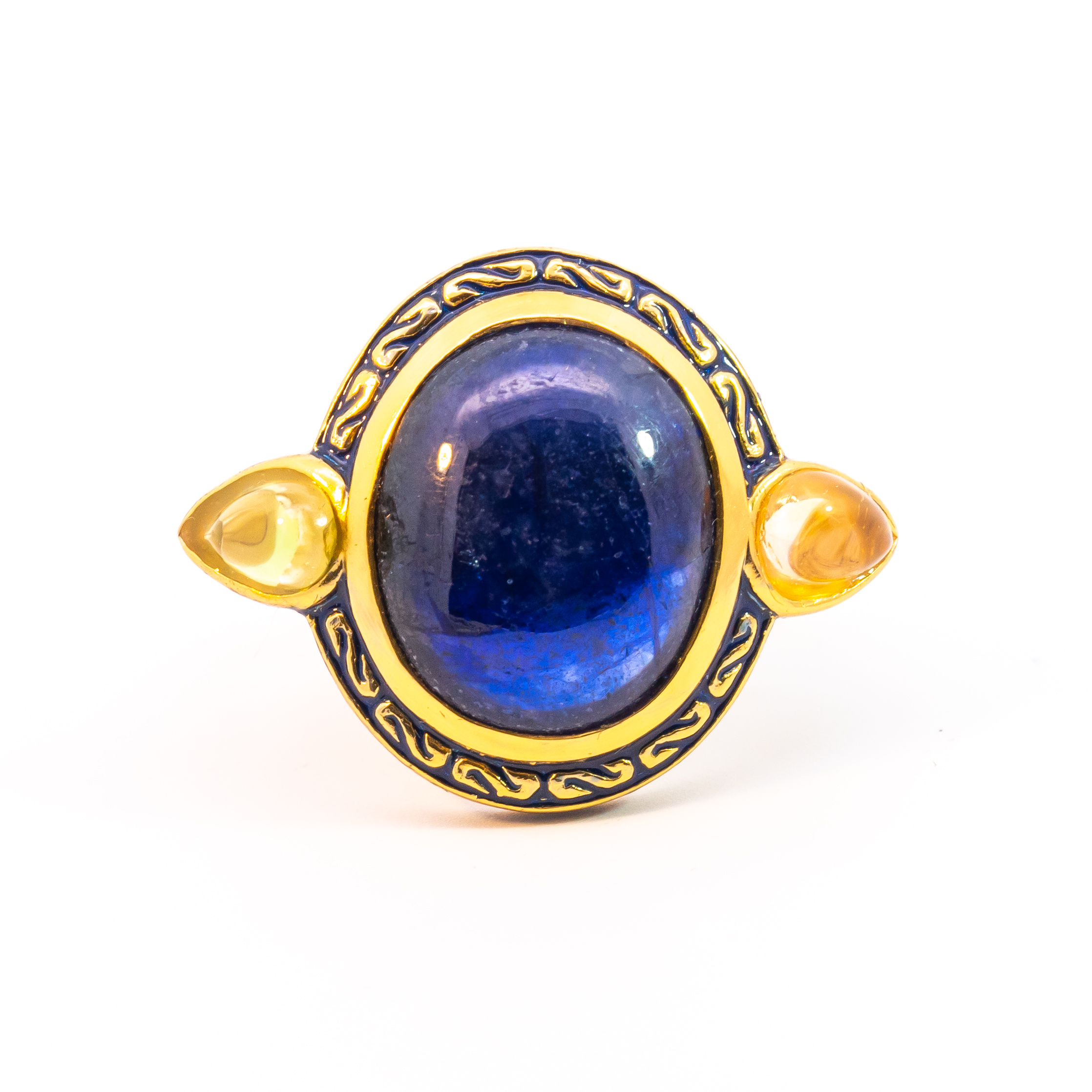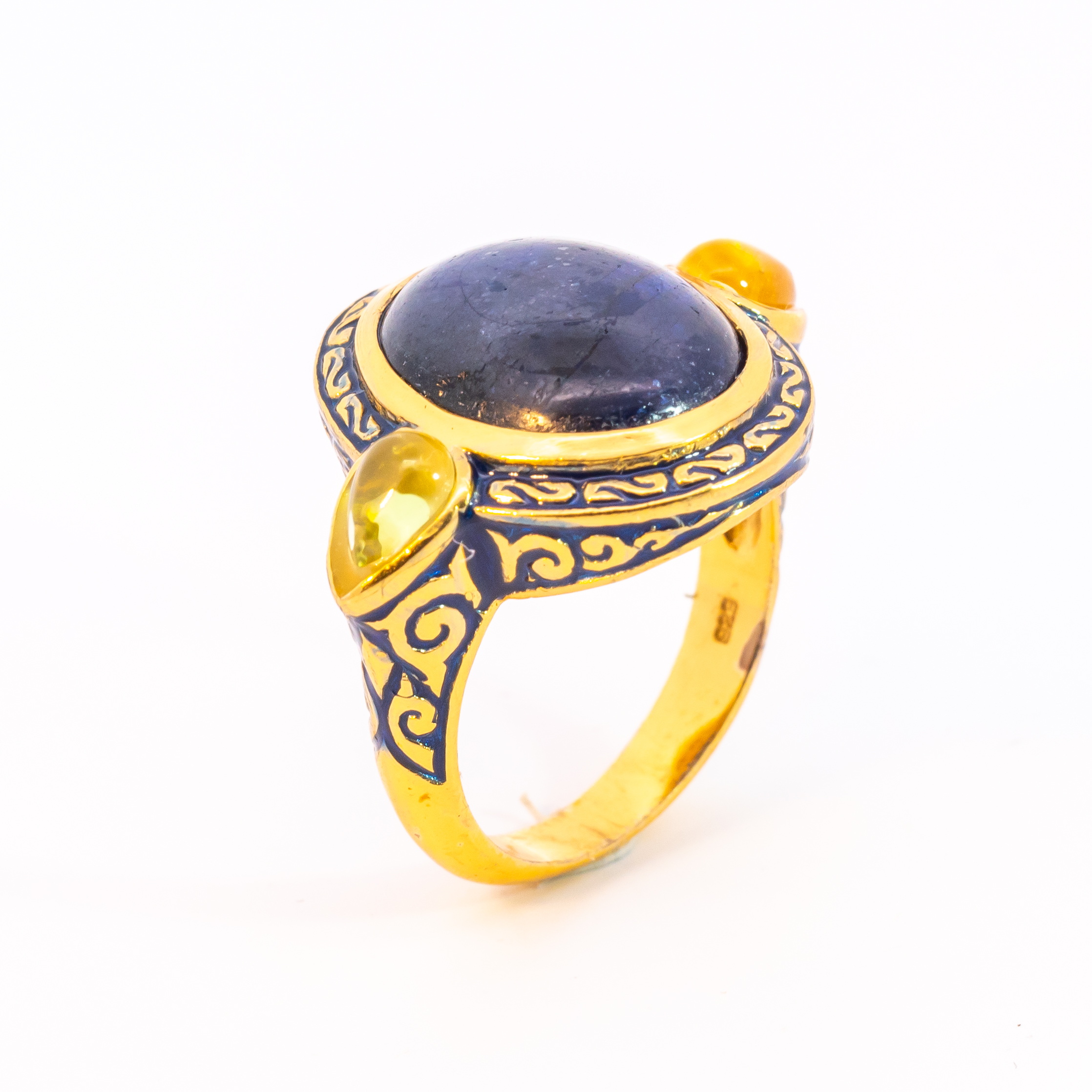 Sterling silver jewelry with 22k gold plated, natural stone and enamel.