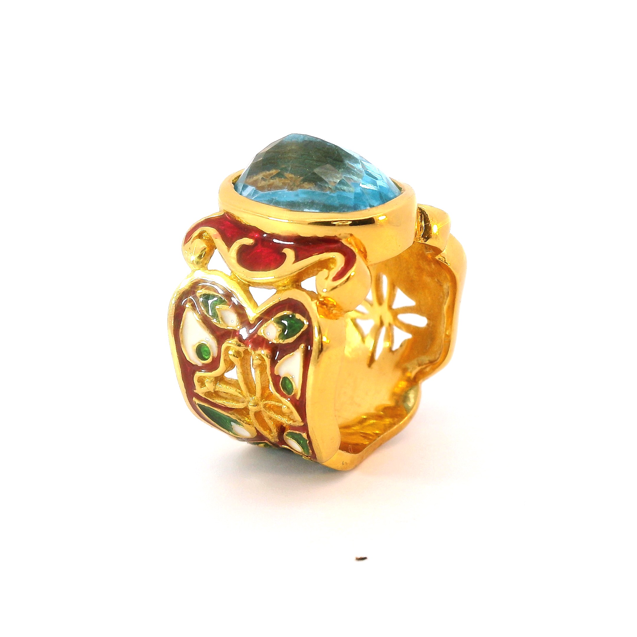 Sterling silver jewelry with 22k gold plated, natural stone and enamel.