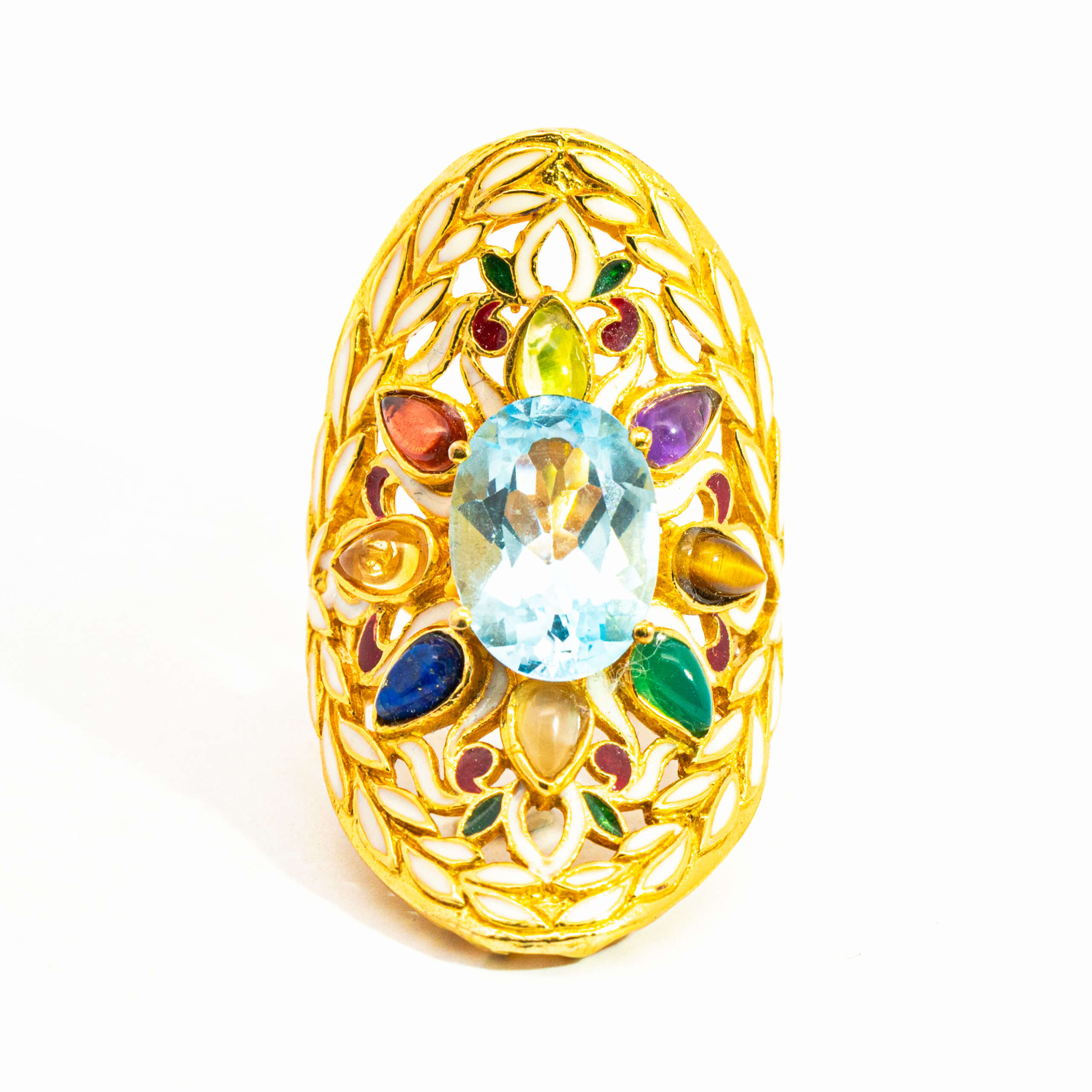 Sterling silver jewelry with 22k gold plated, natural stone and enamel.