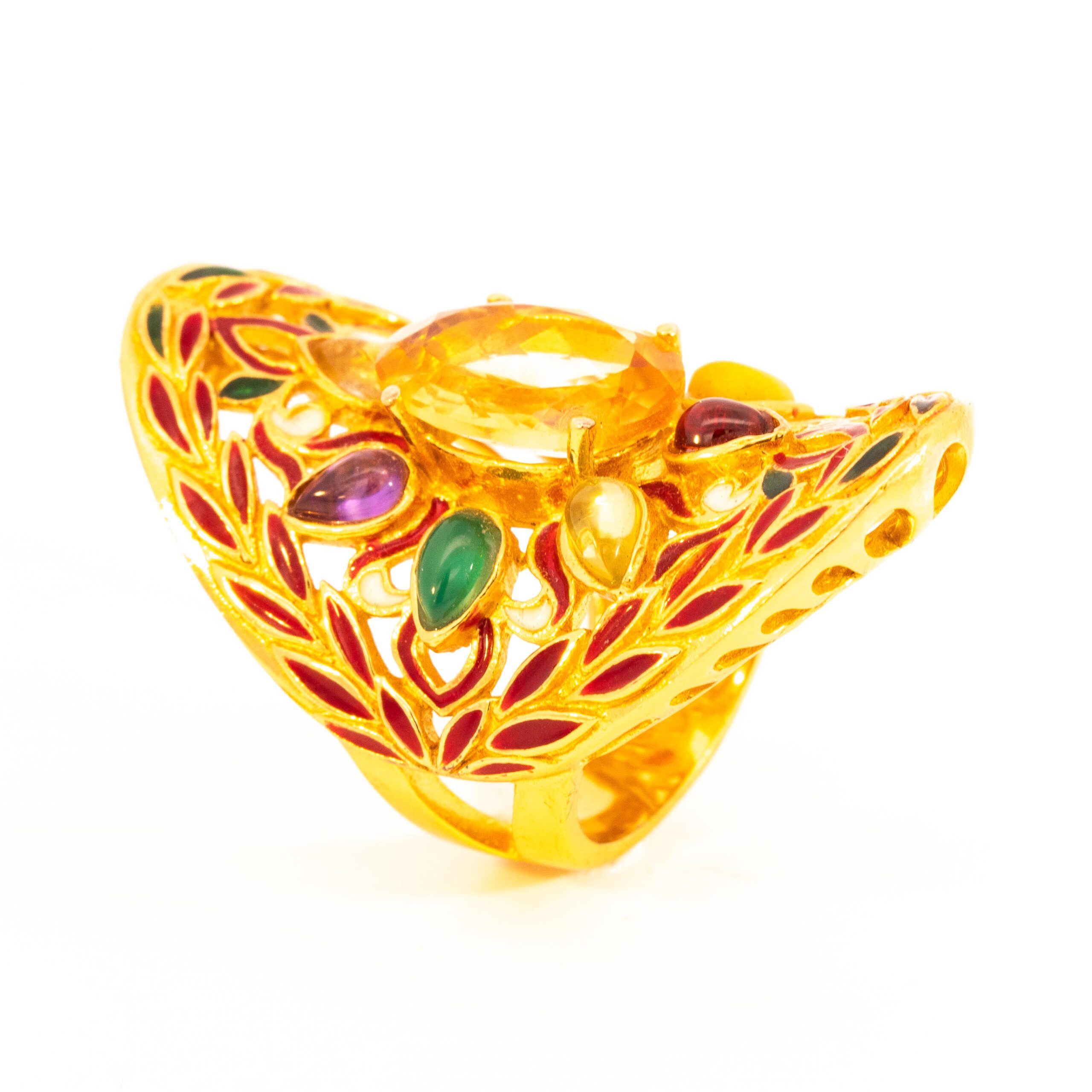 Sterling silver jewelry with 22k gold plated, natural stone and enamel.