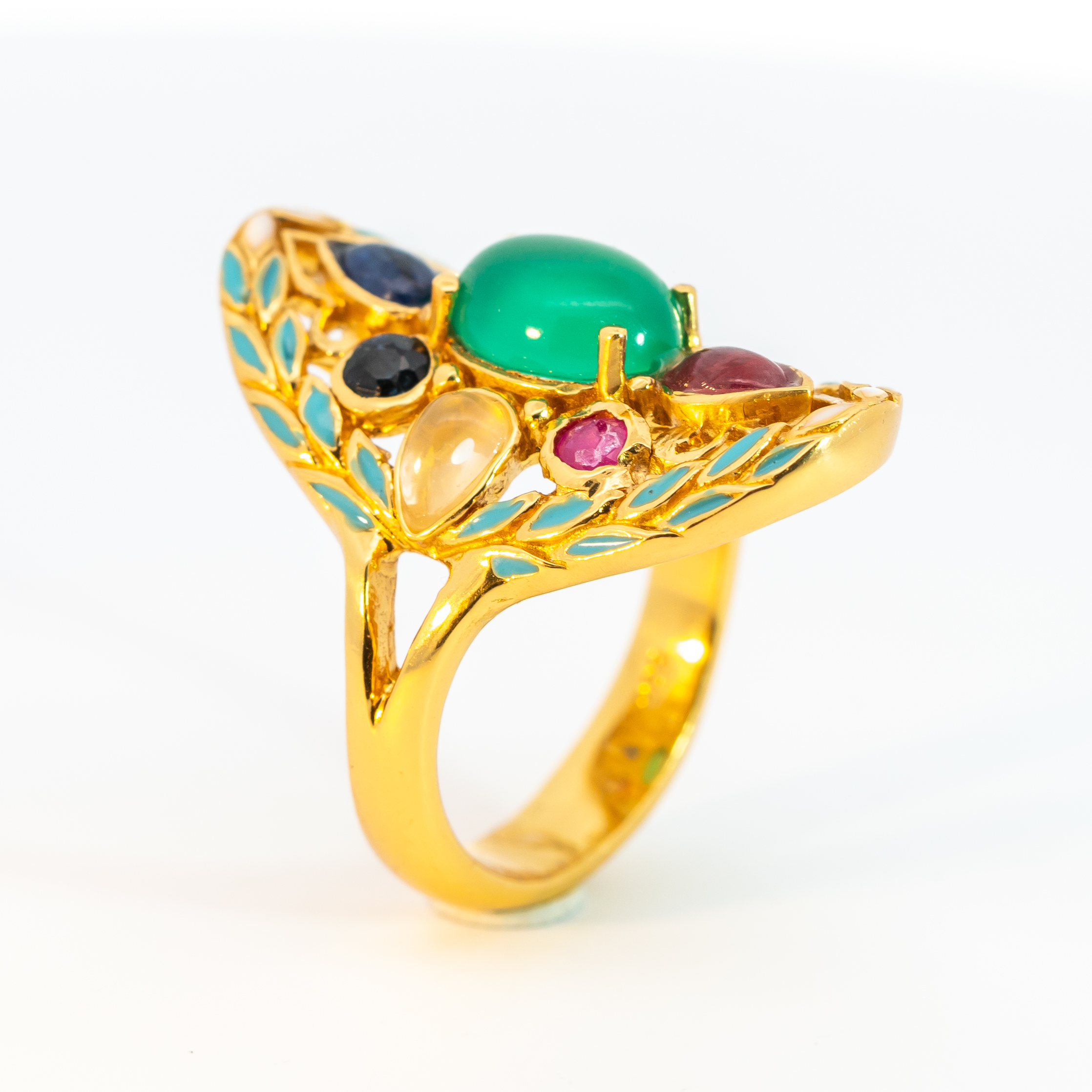 Sterling silver jewelry with 22k gold plated, natural stone and enamel.