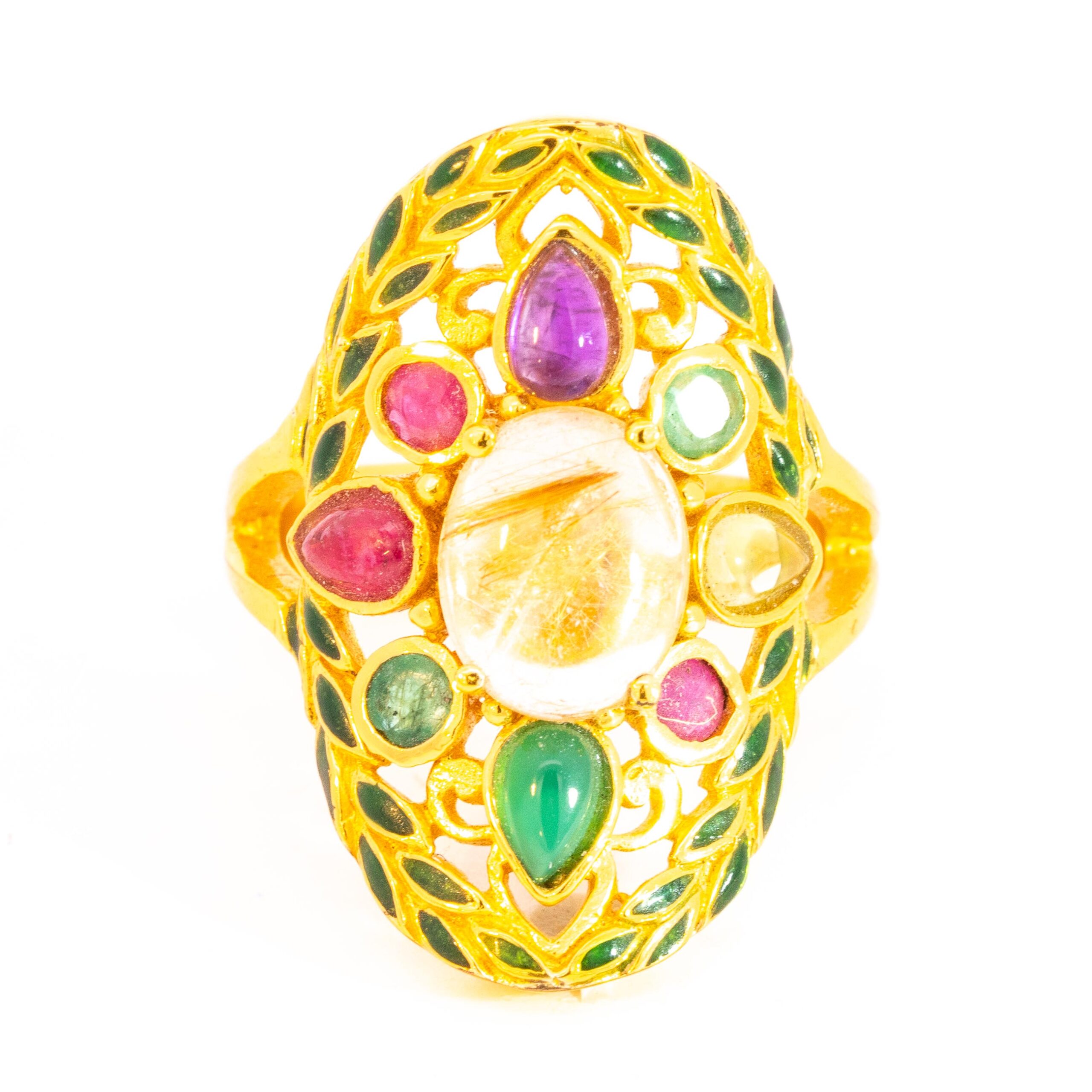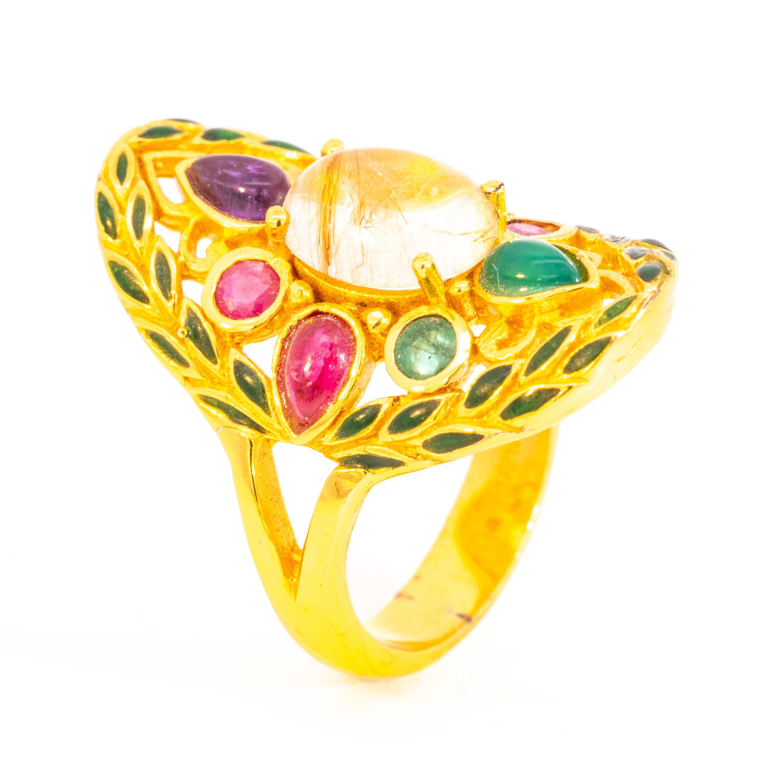 Sterling silver jewelry with 22k gold plated, natural stone and enamel.