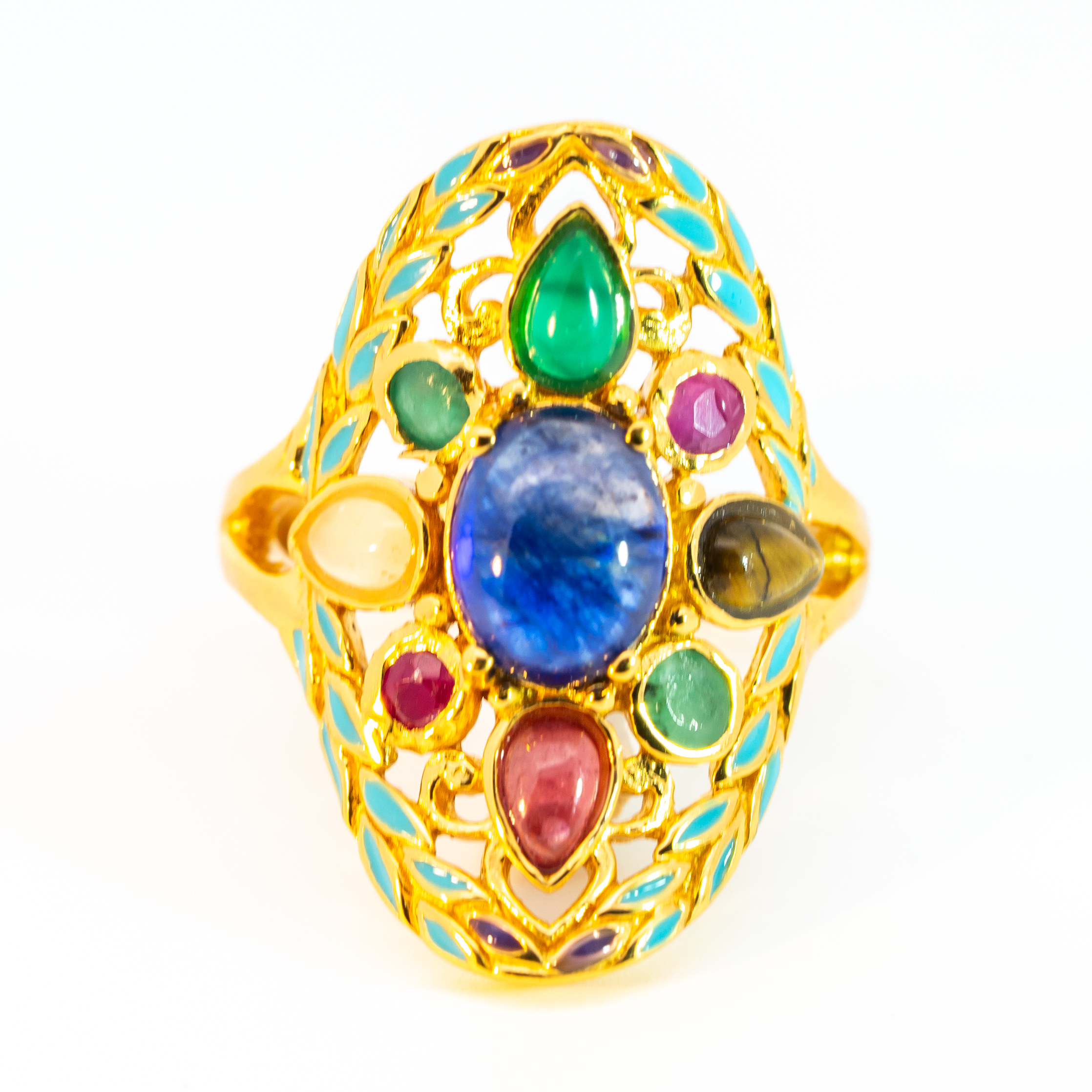 Sterling silver jewelry with 22k gold plated, natural stone and enamel.