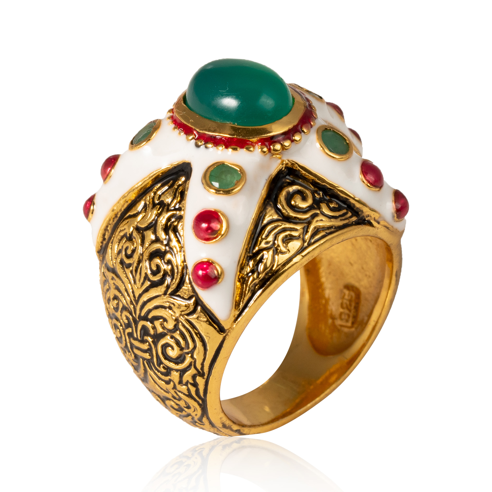 Sterling silver jewelry with 22k gold plated, natural stone and enamel.