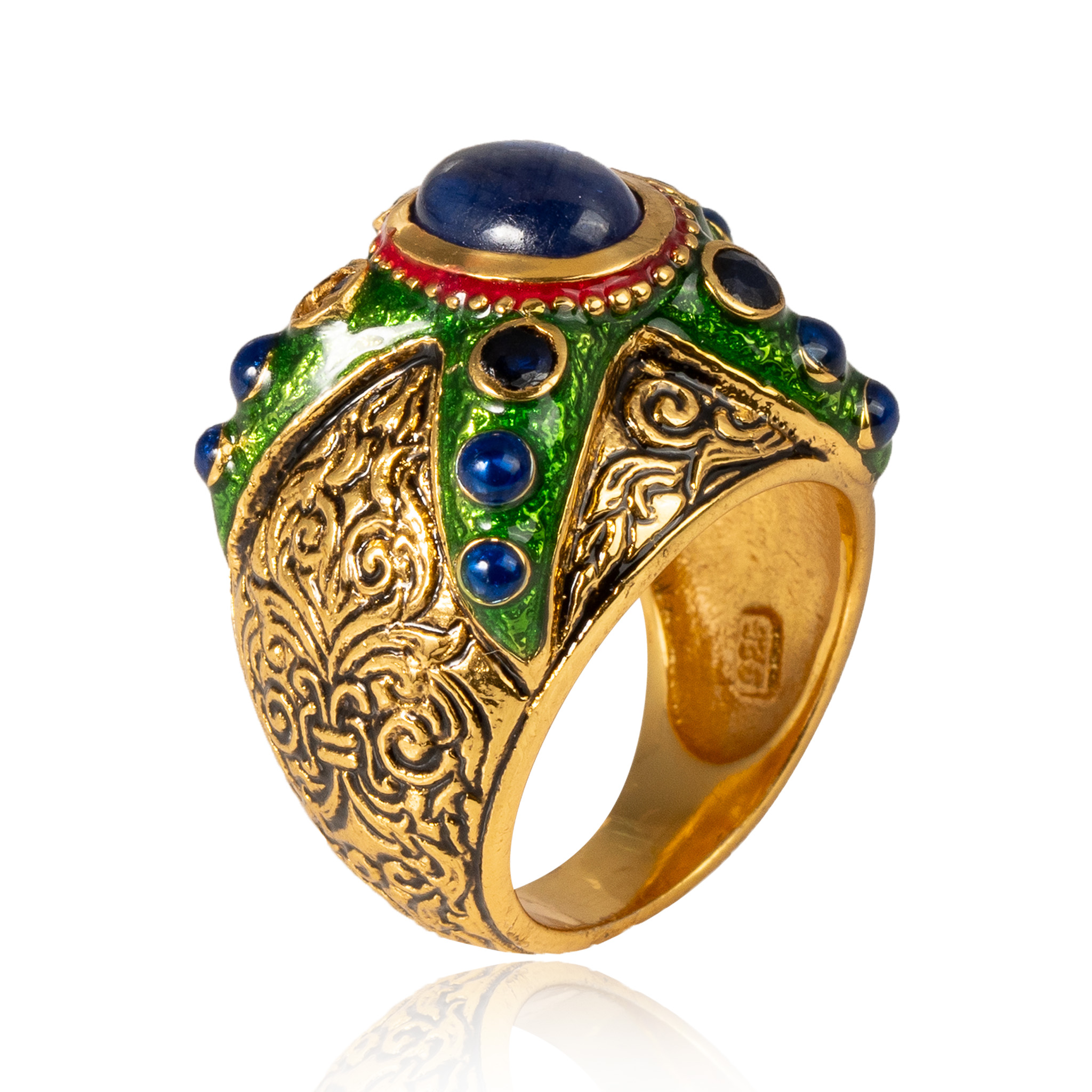 Sterling silver jewelry with 22k gold plated, natural stone and enamel.