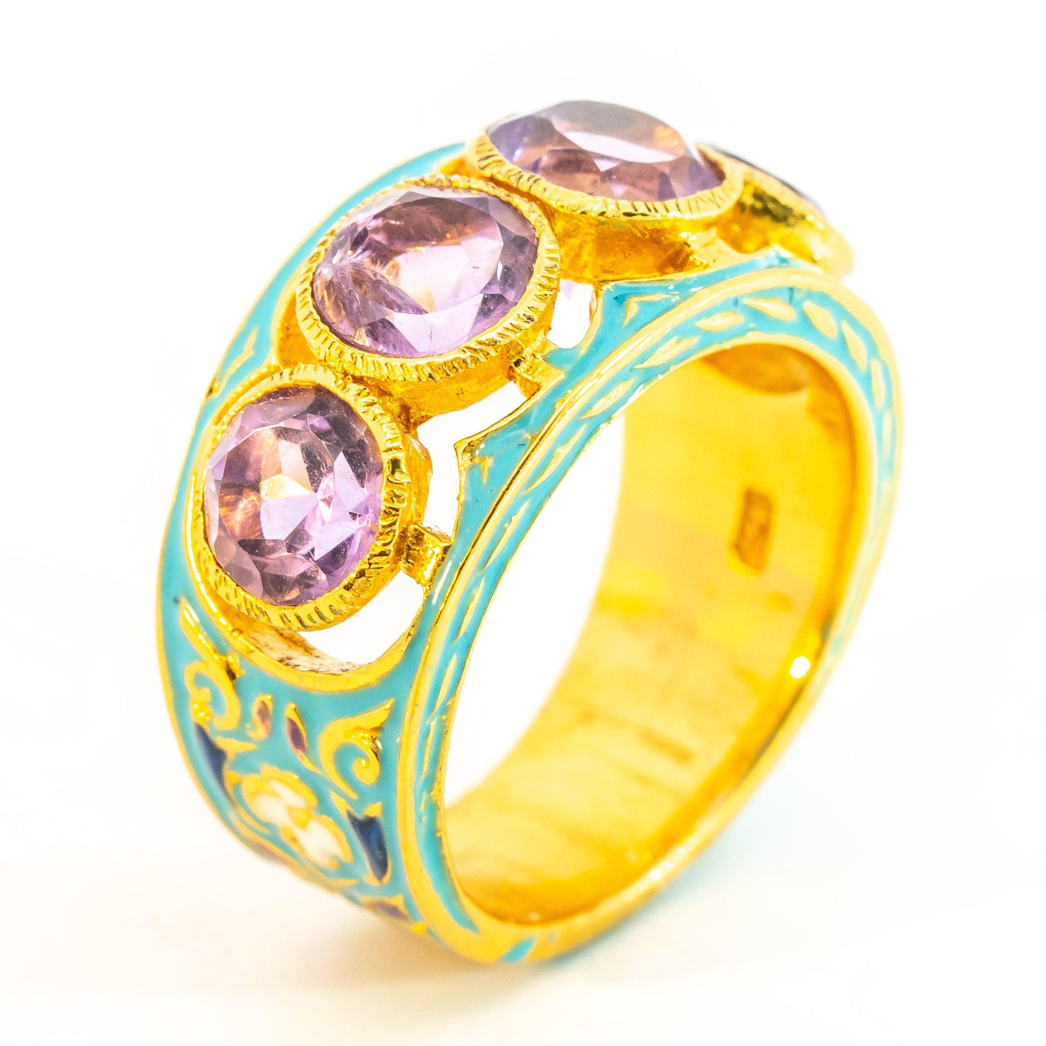 Sterling silver jewelry with 22k gold plated, natural stone and enamel.