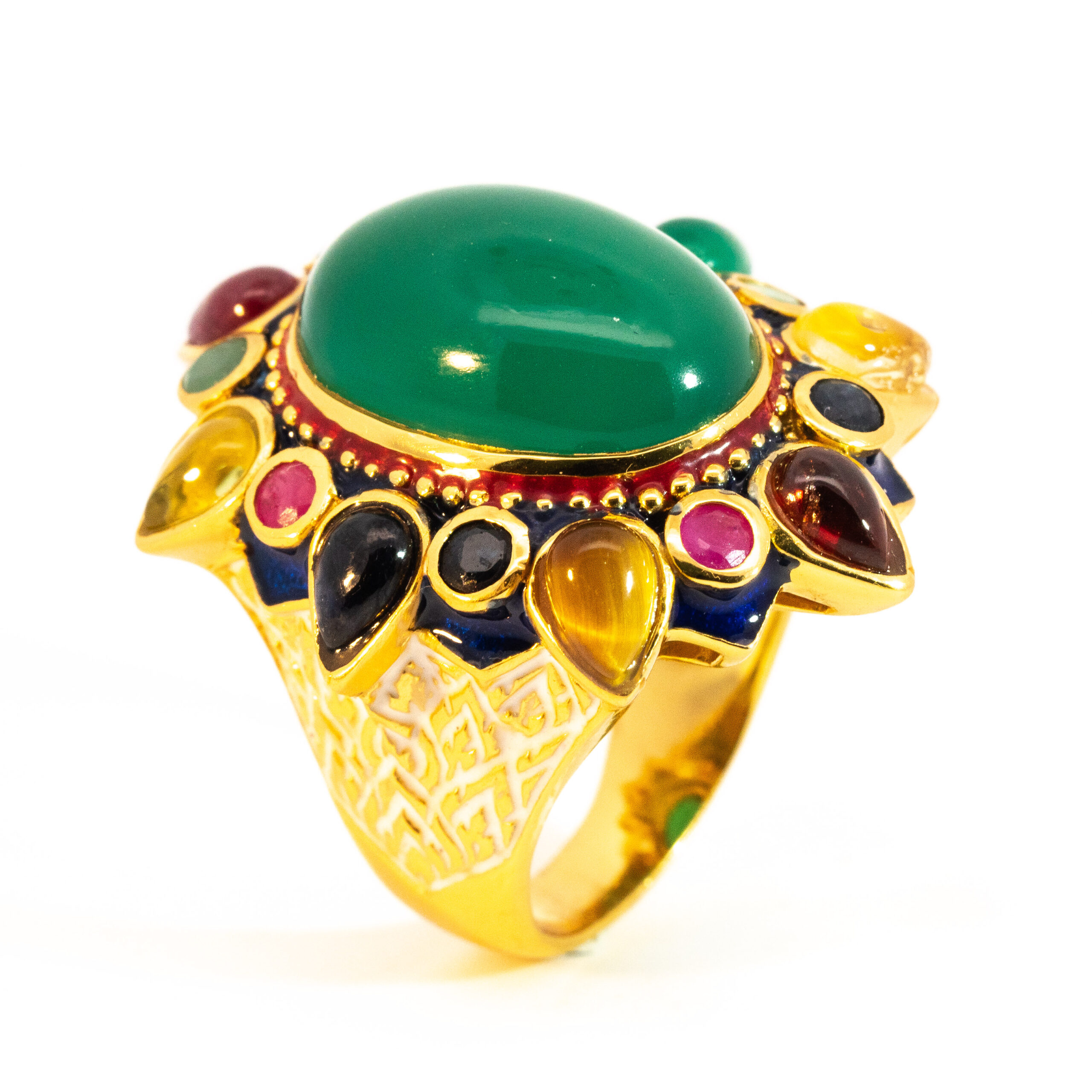 Sterling silver jewelry with 22k gold plated, natural stone and enamel.