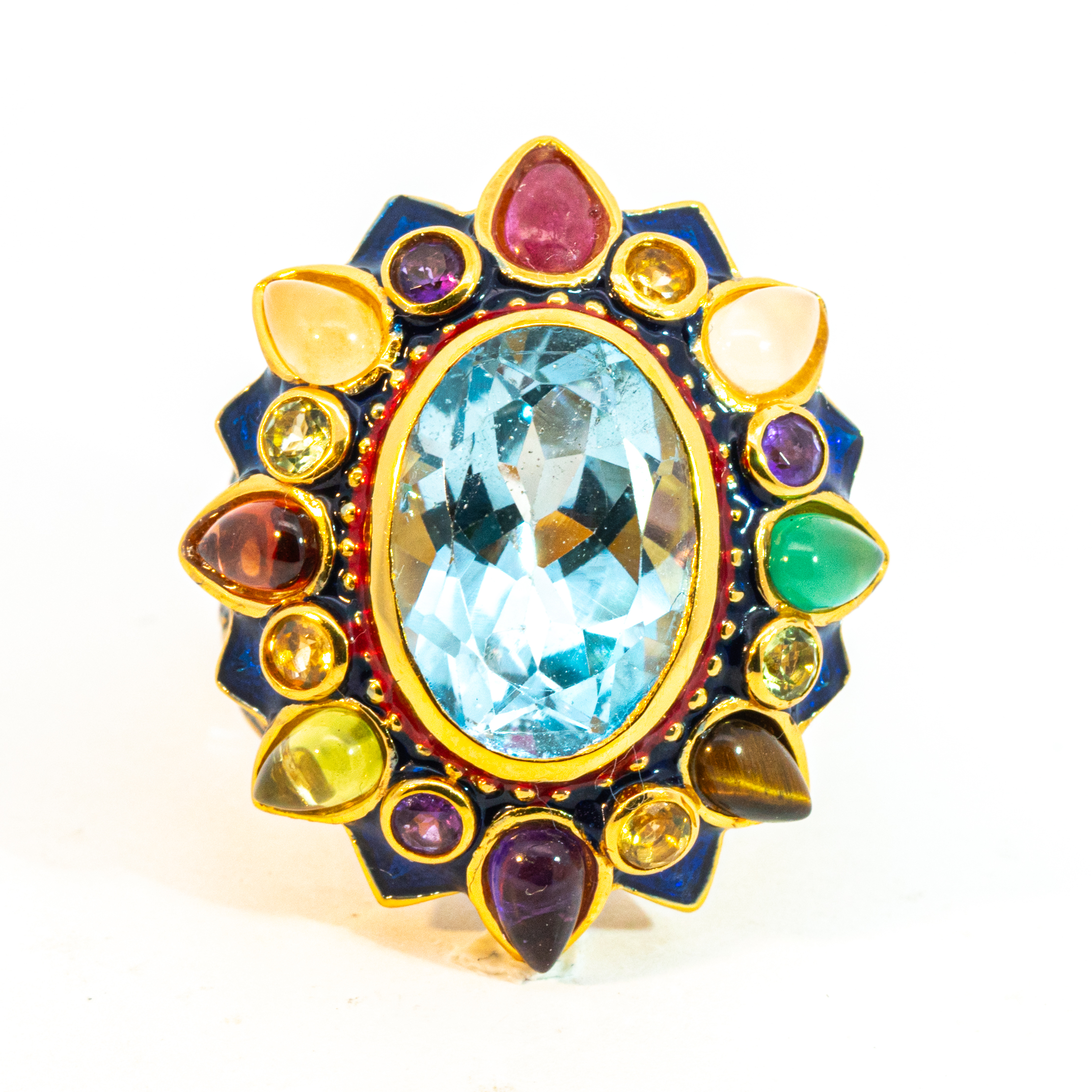Sterling silver jewelry with 22k gold plated, natural stone and enamel.