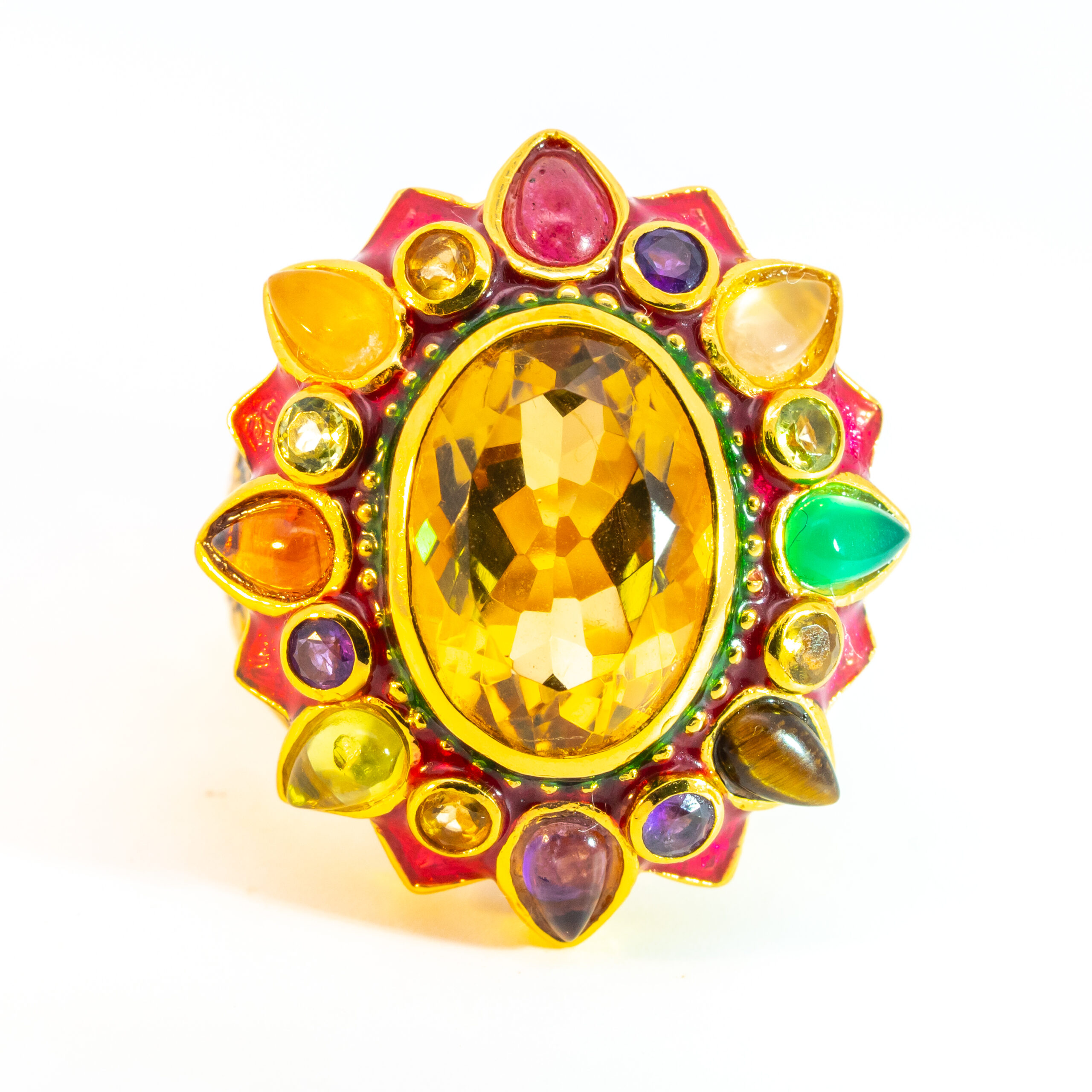 Sterling silver jewelry with 22k gold plated, natural stone and enamel.