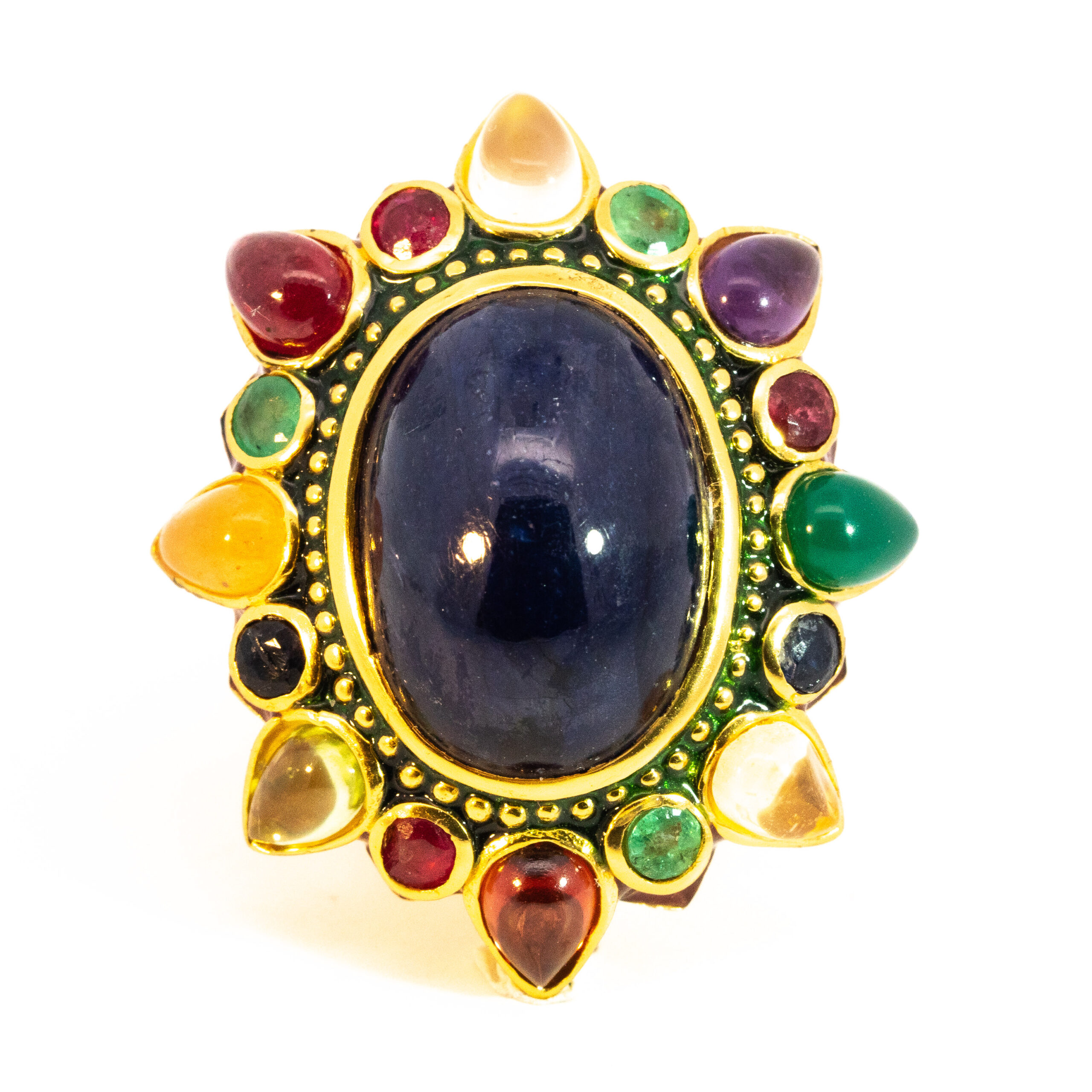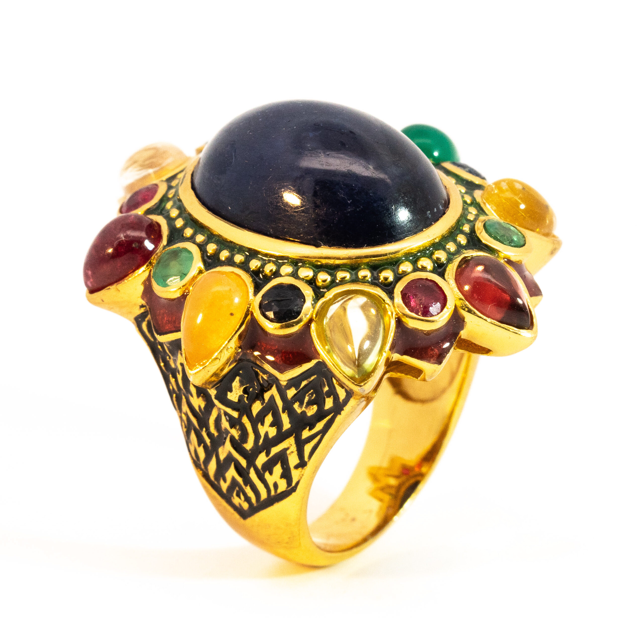 Sterling silver jewelry with 22k gold plated, natural stone and enamel.