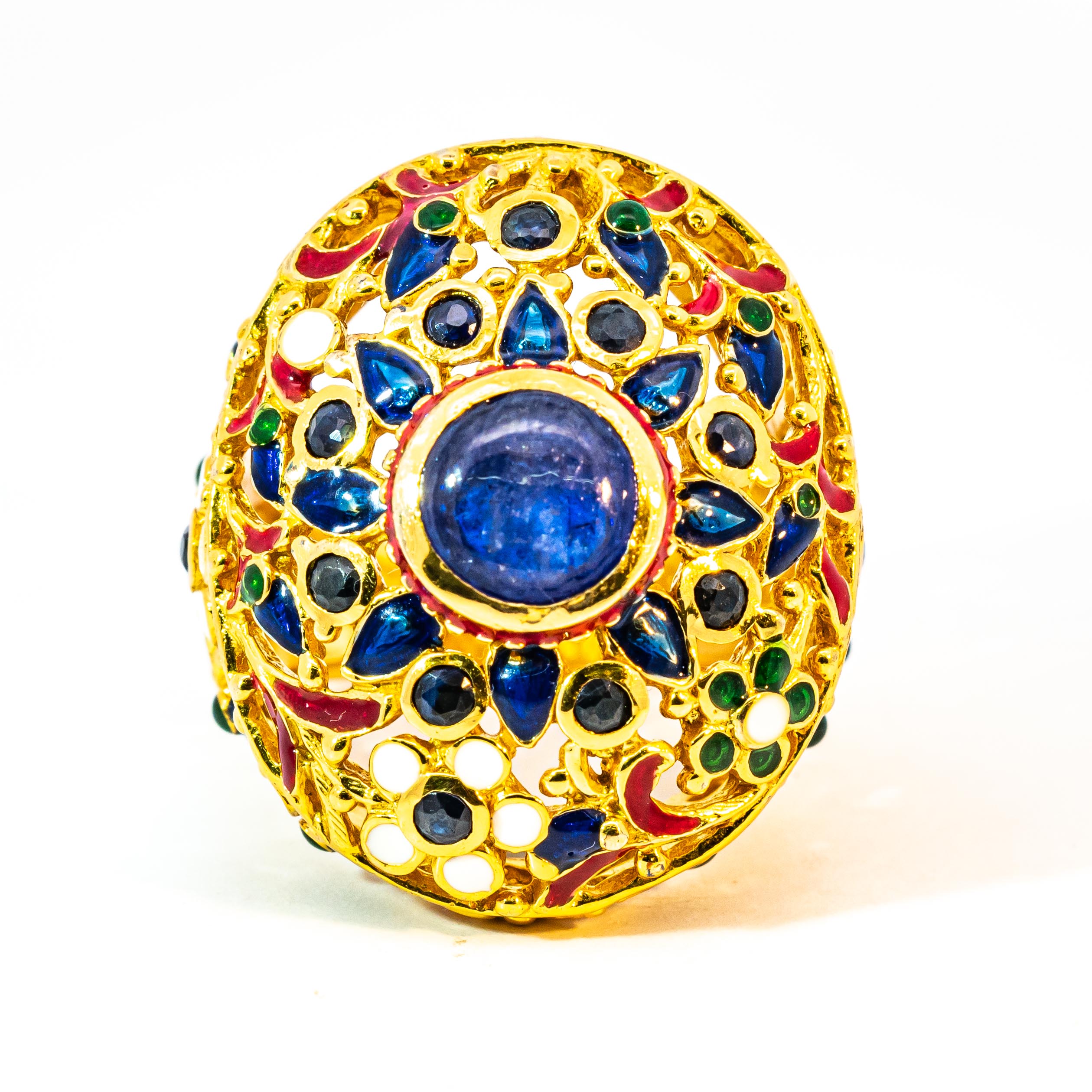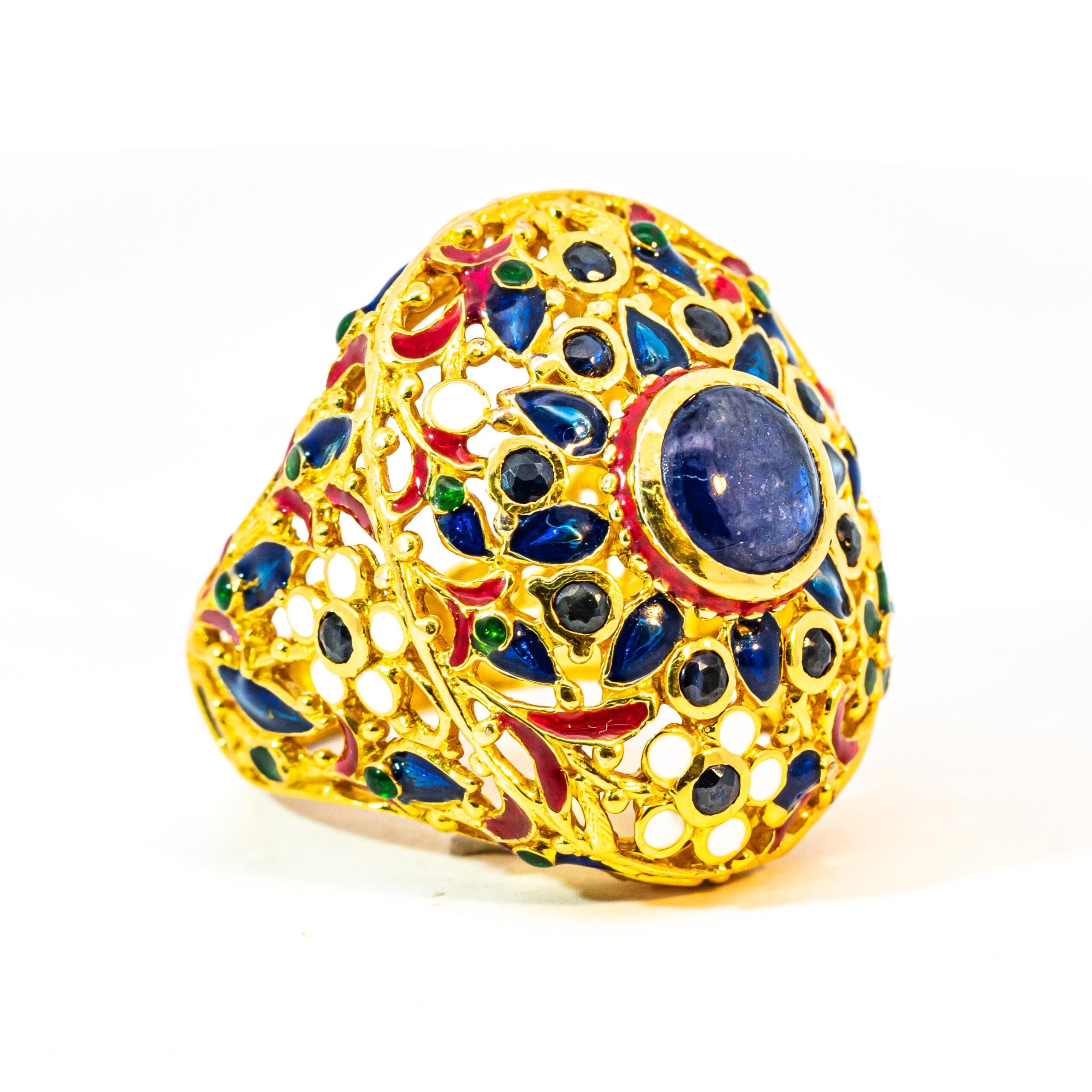 Sterling silver jewelry with 22k gold plated, natural stone and enamel.