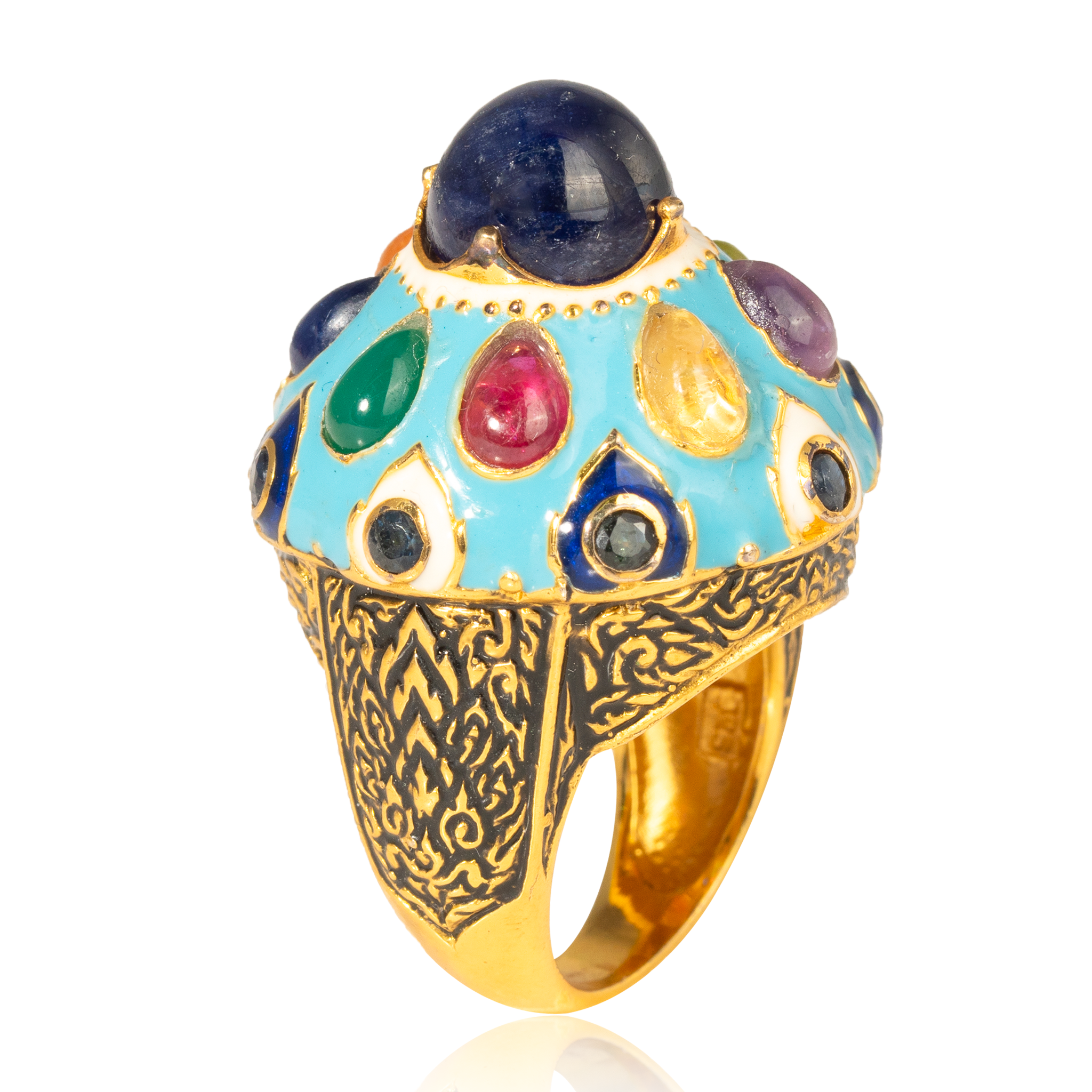 Sterling silver jewelry with 22k gold plated, natural stone and enamel.