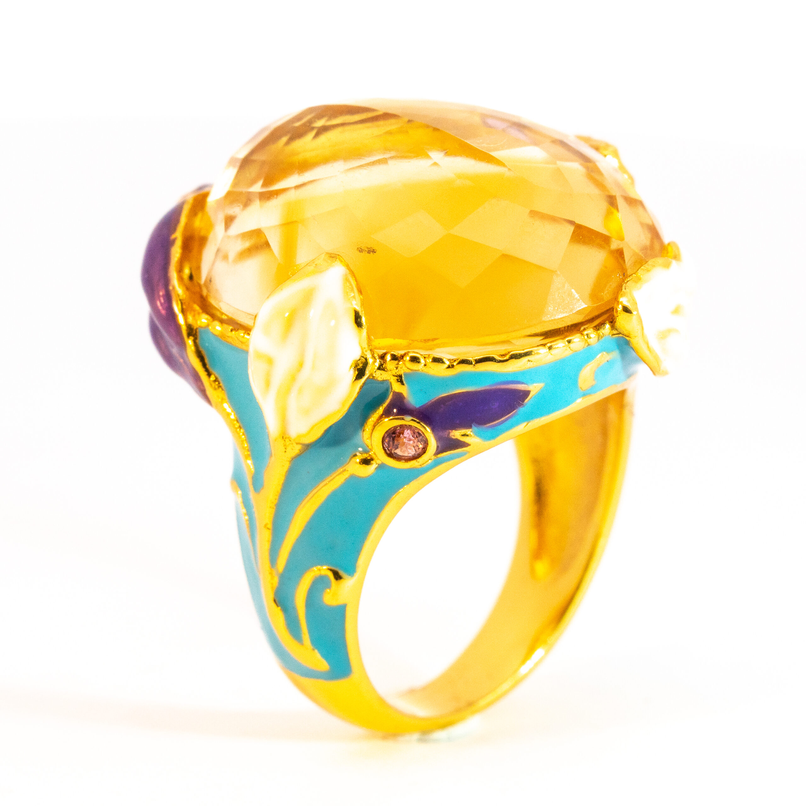 Sterling silver jewelry with 22k gold plated, natural stone and enamel.
