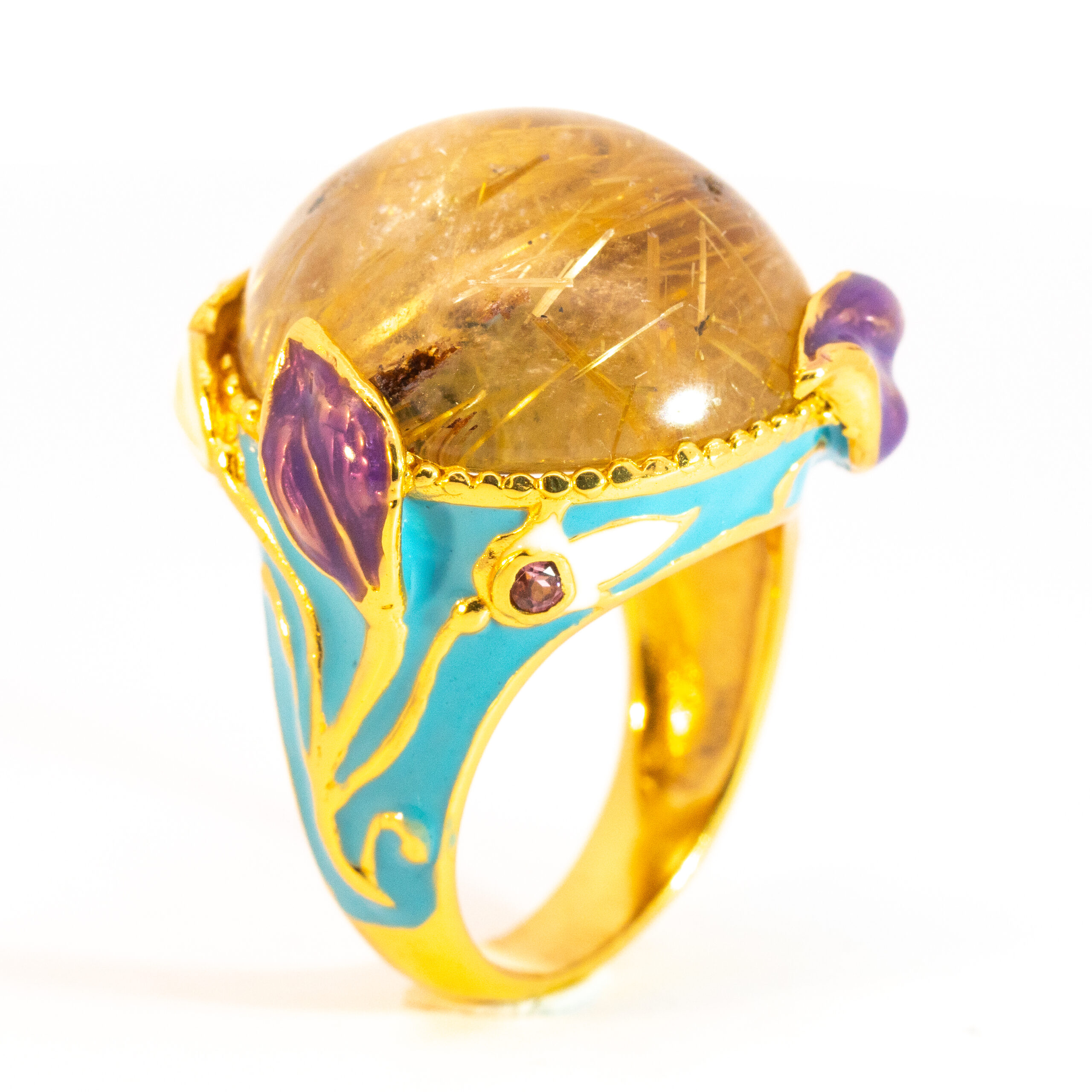 Sterling silver jewelry with 22k gold plated, natural stone and enamel.