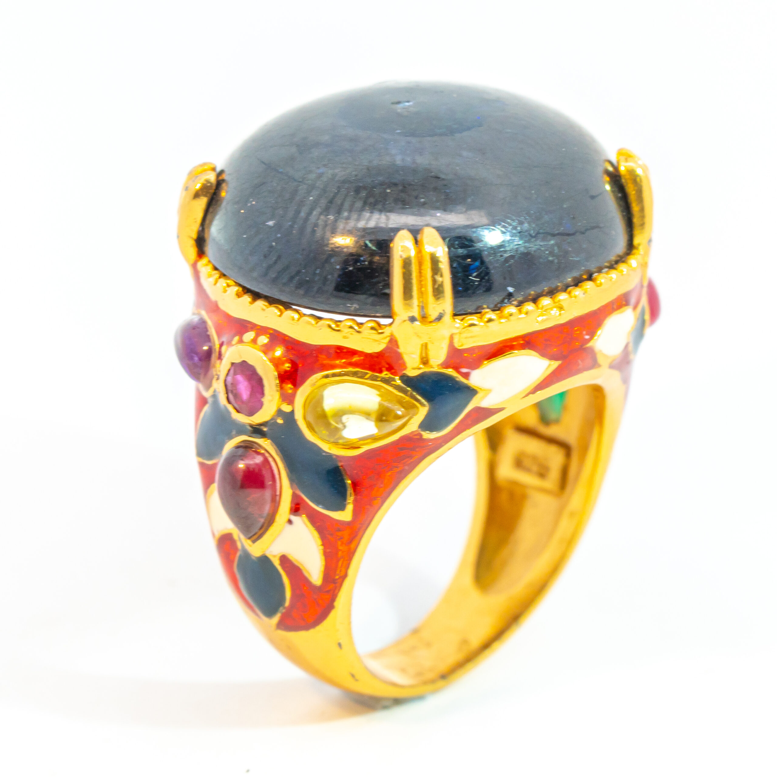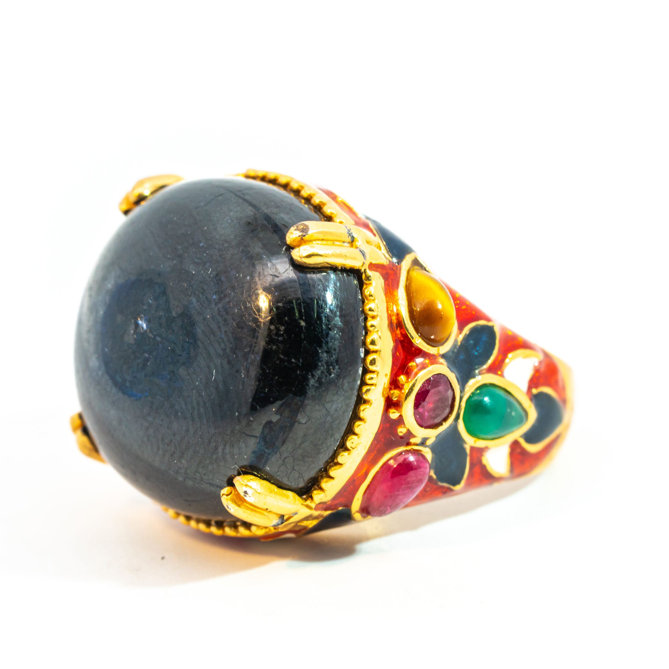Sterling silver jewelry with 22k gold plated, natural stone and enamel.