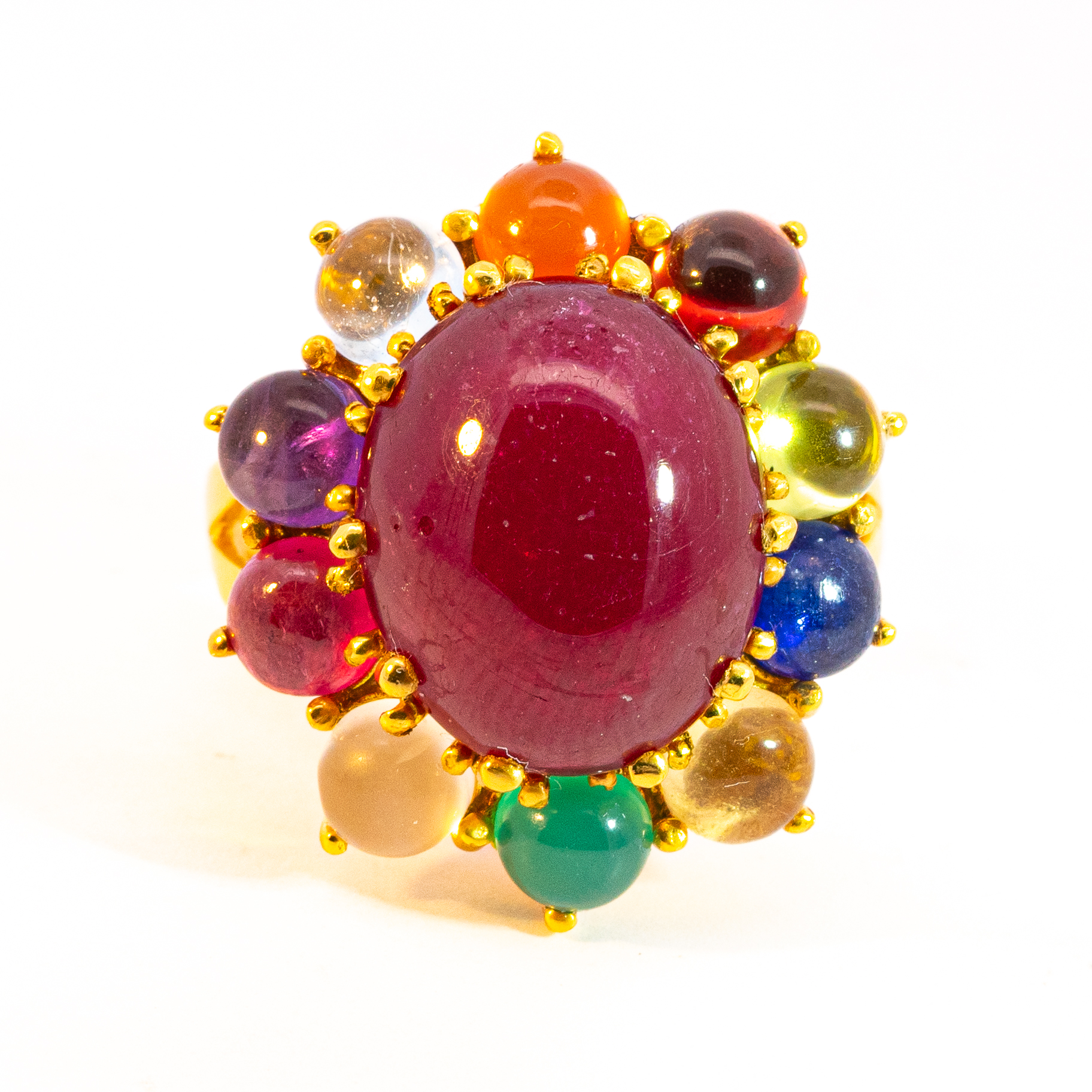Sterling silver jewelry with 22k gold plated, natural stone and enamel.