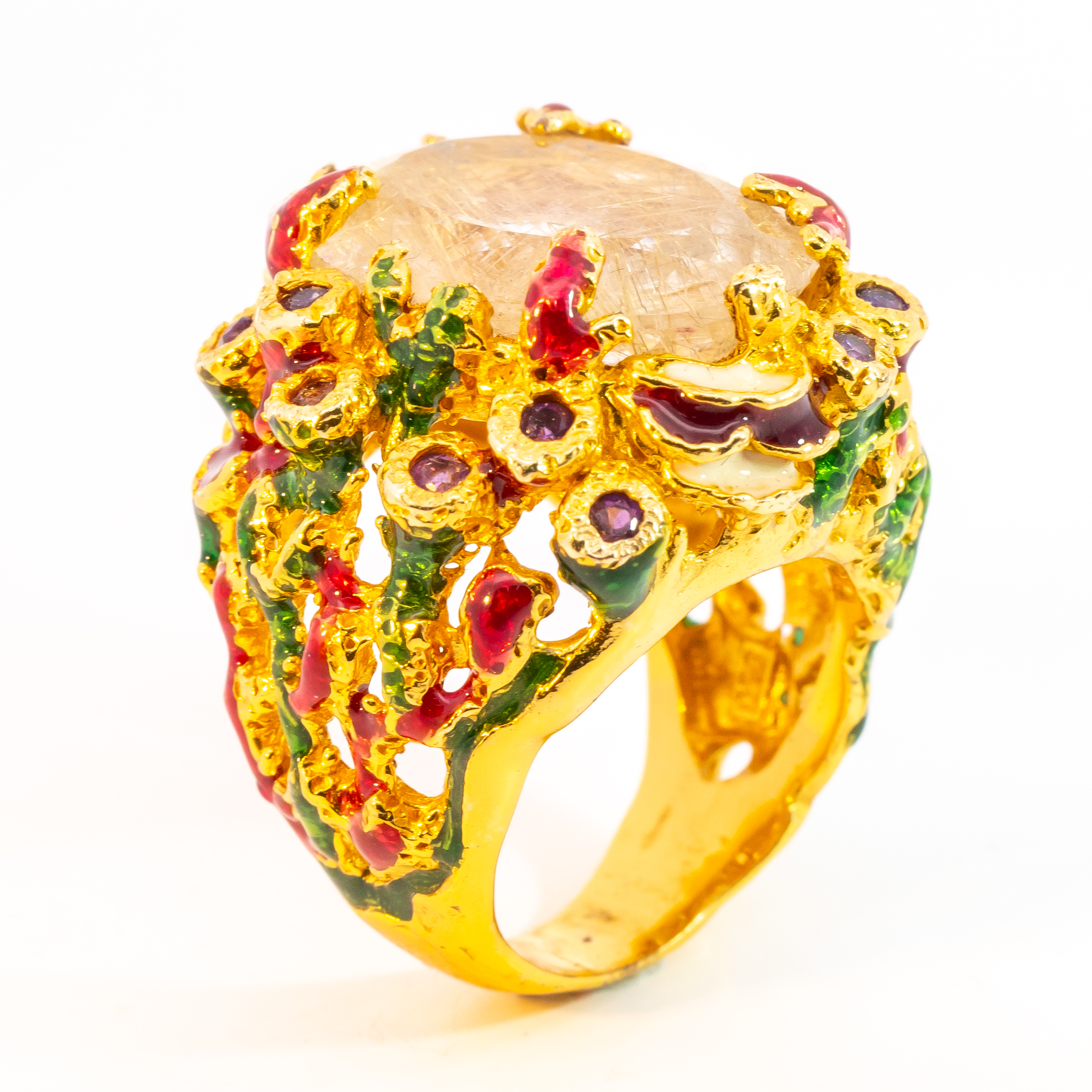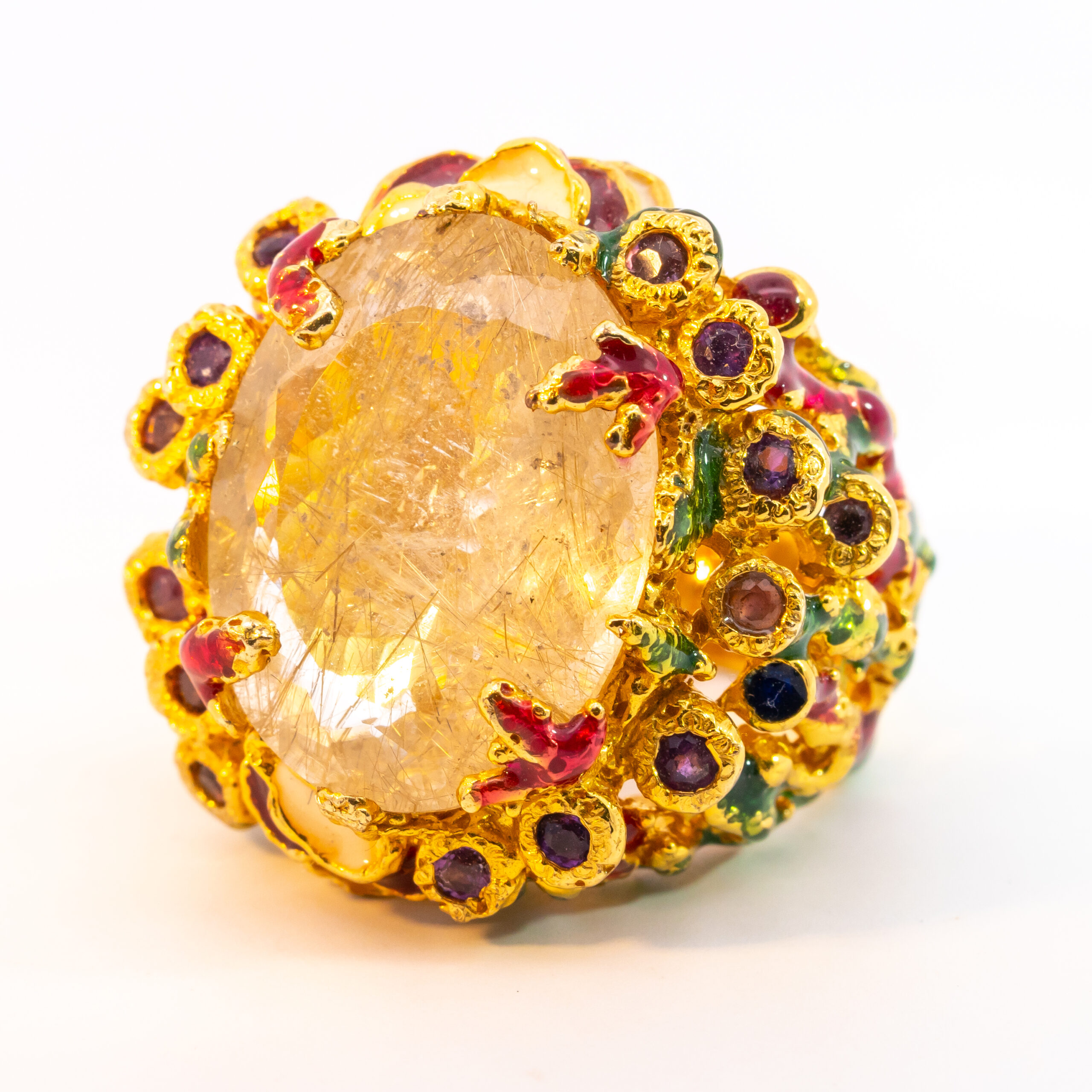 Sterling silver jewelry with 22k gold plated, natural stone and enamel.