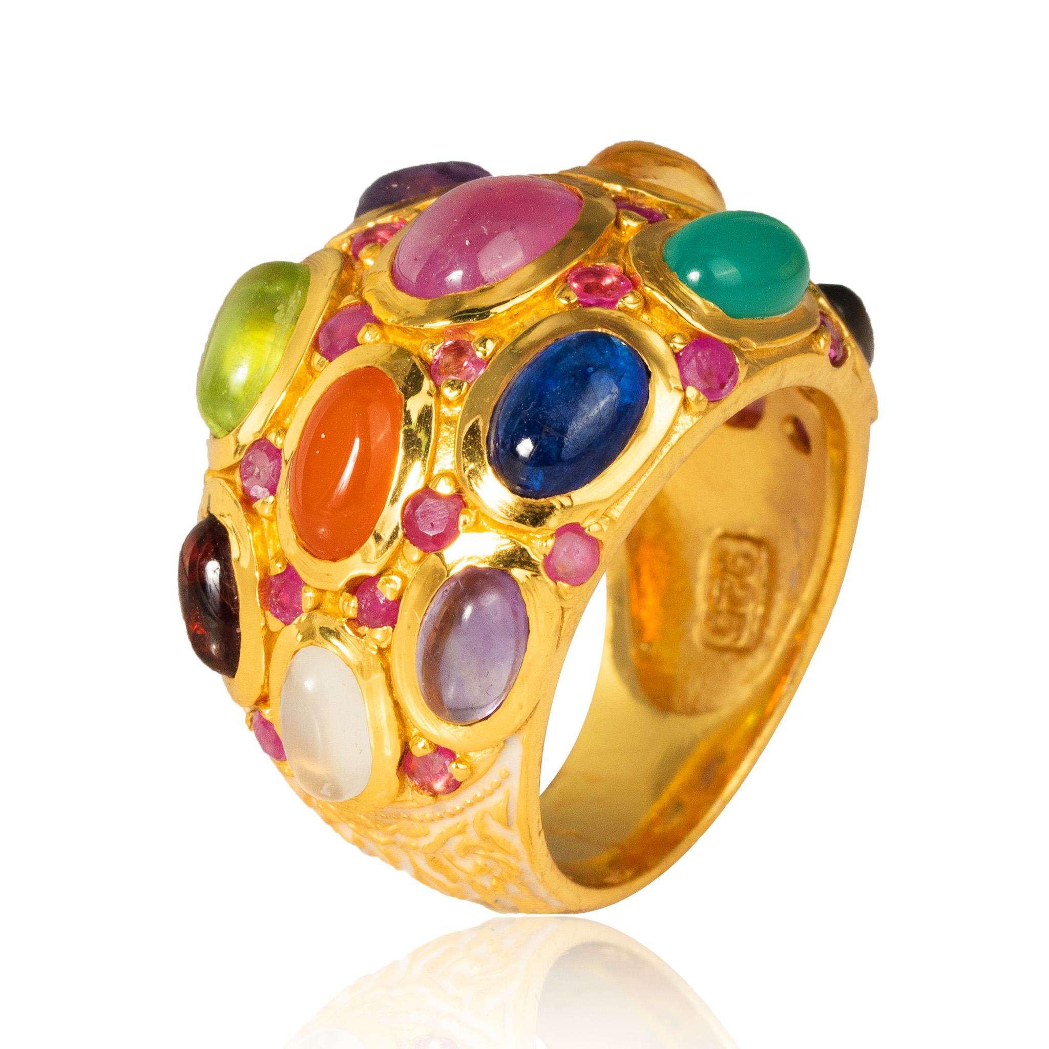 Sterling silver jewelry with 22k gold plated, natural stone and enamel.