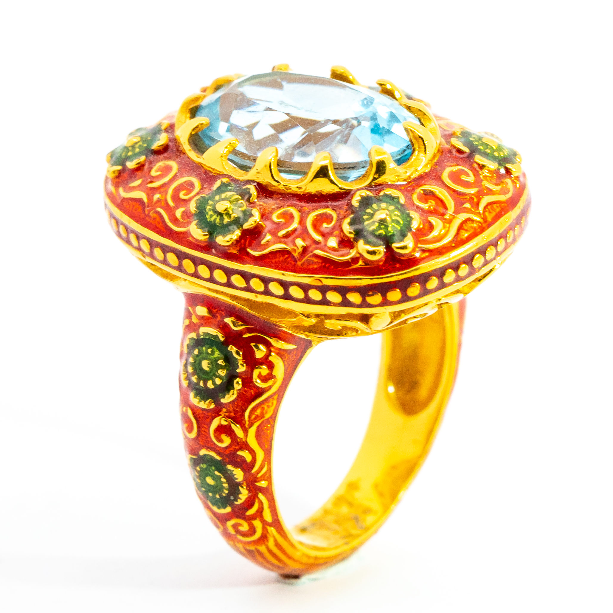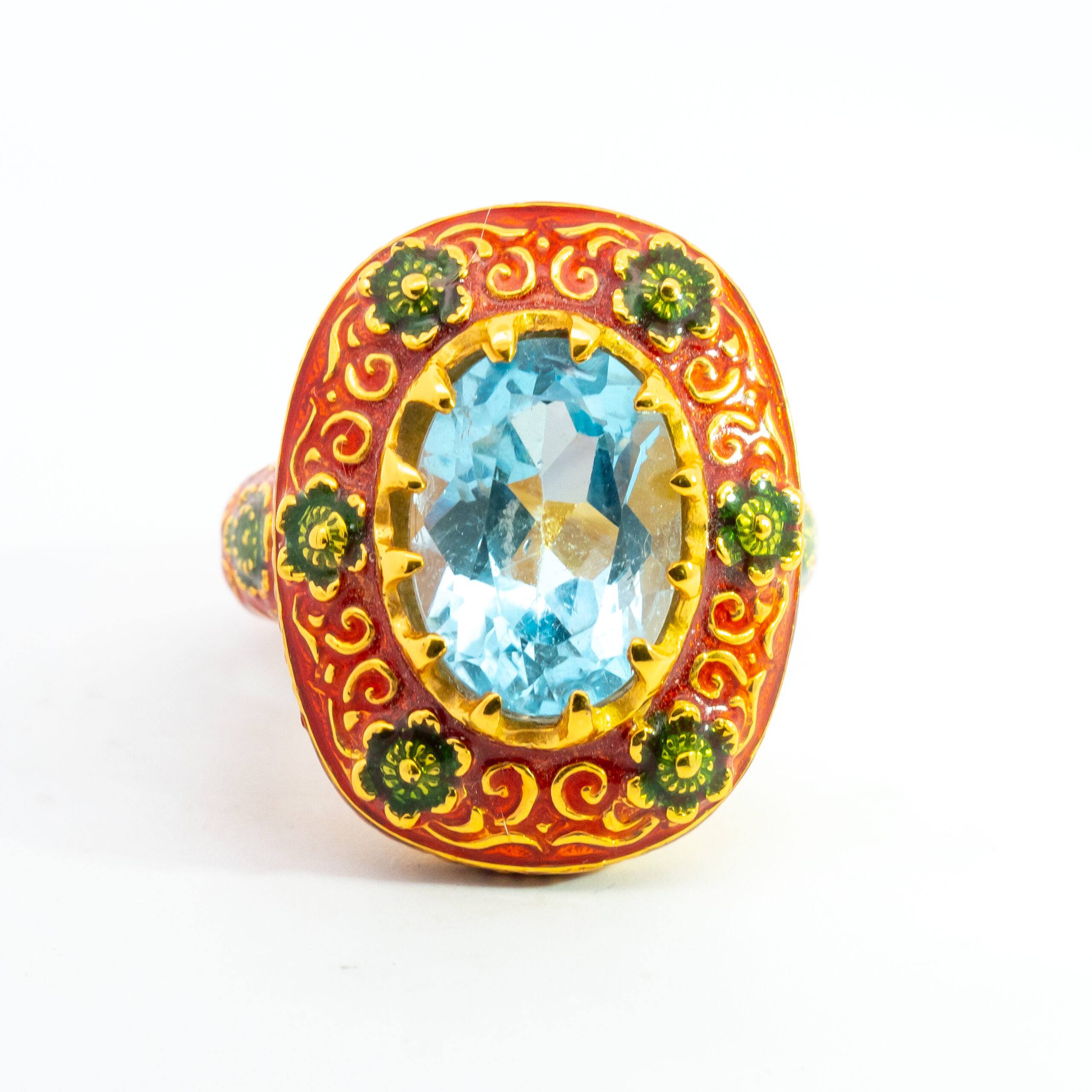 Sterling silver jewelry with 22k gold plated, natural stone and enamel.
