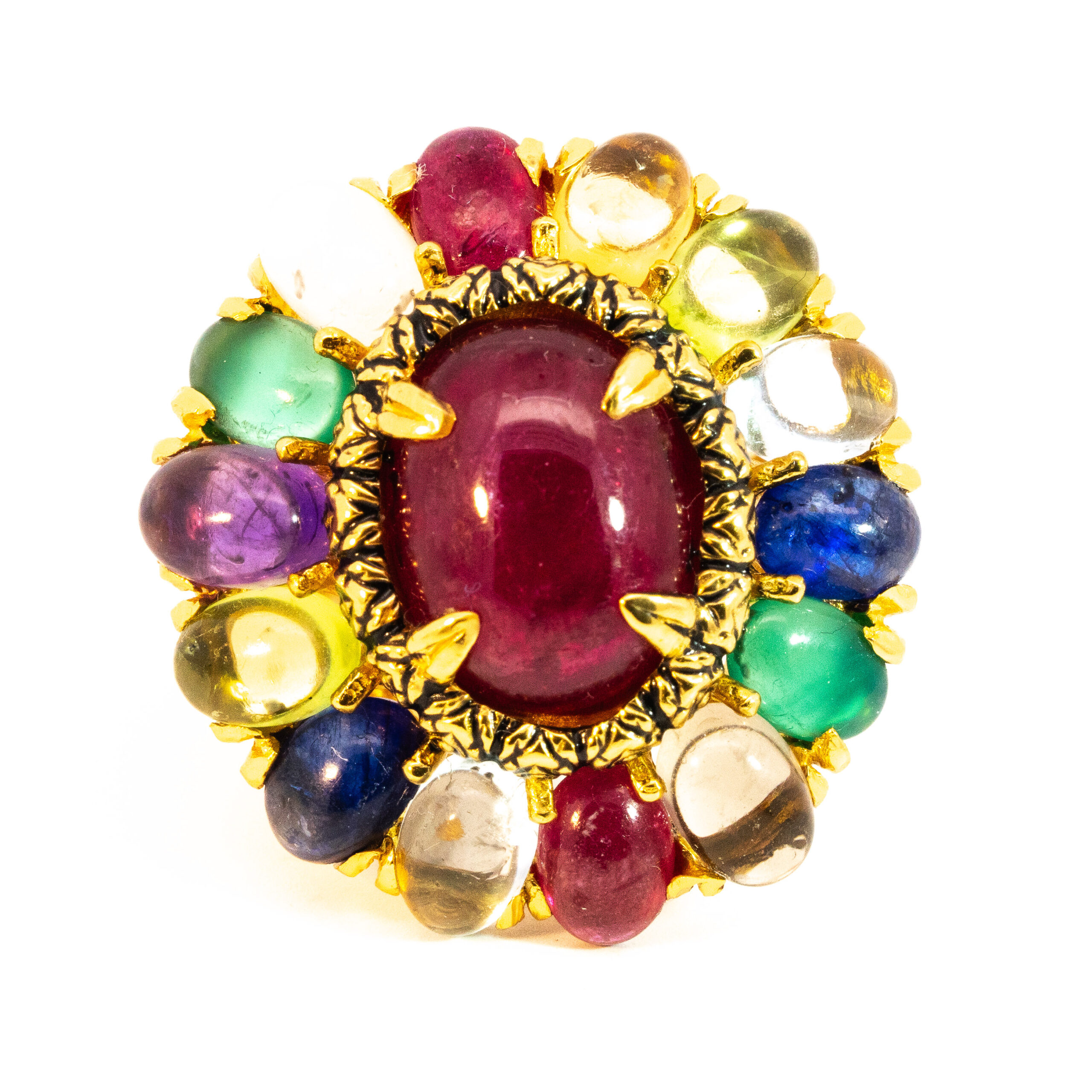 Sterling silver jewelry with 22k gold plated, natural stone and enamel.