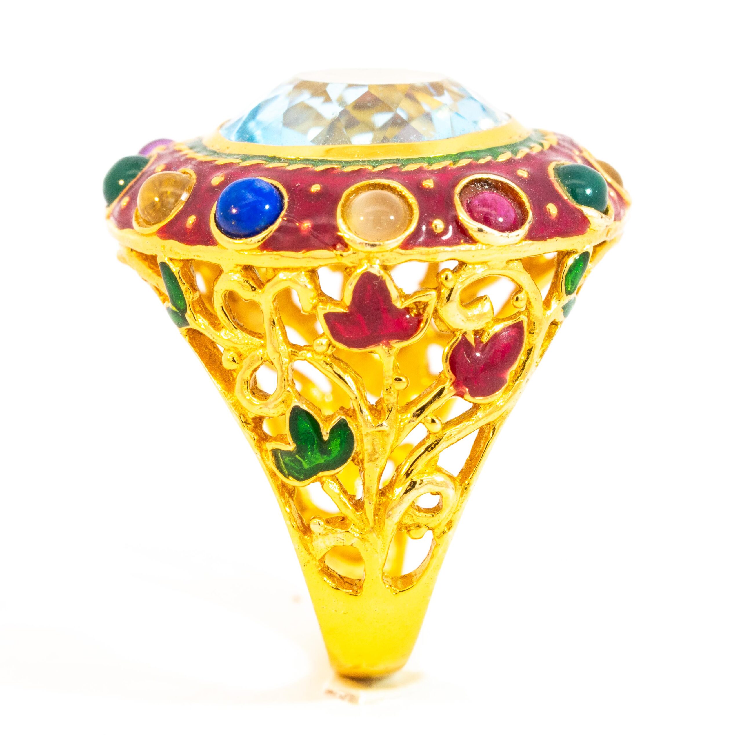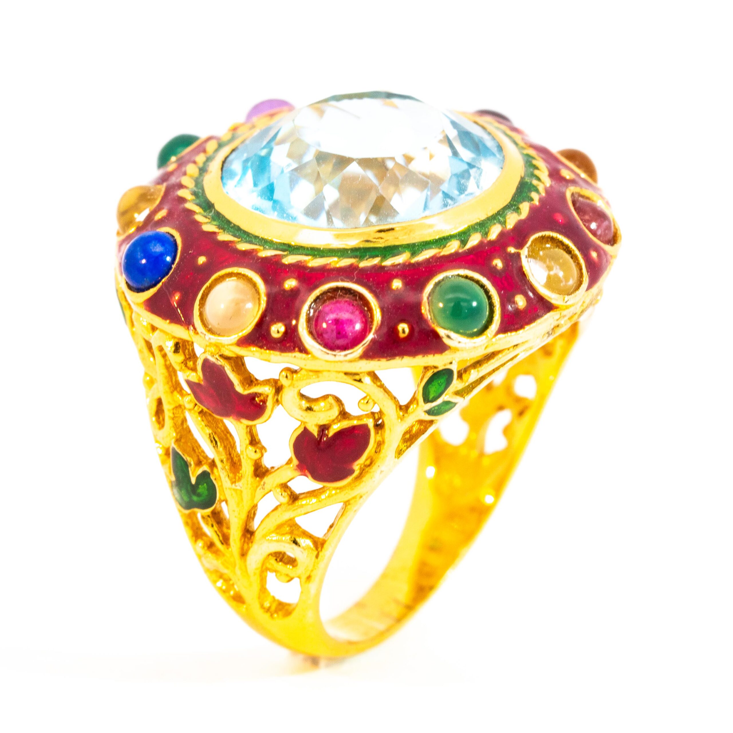 Sterling silver jewelry with 22k gold plated, natural stone and enamel.