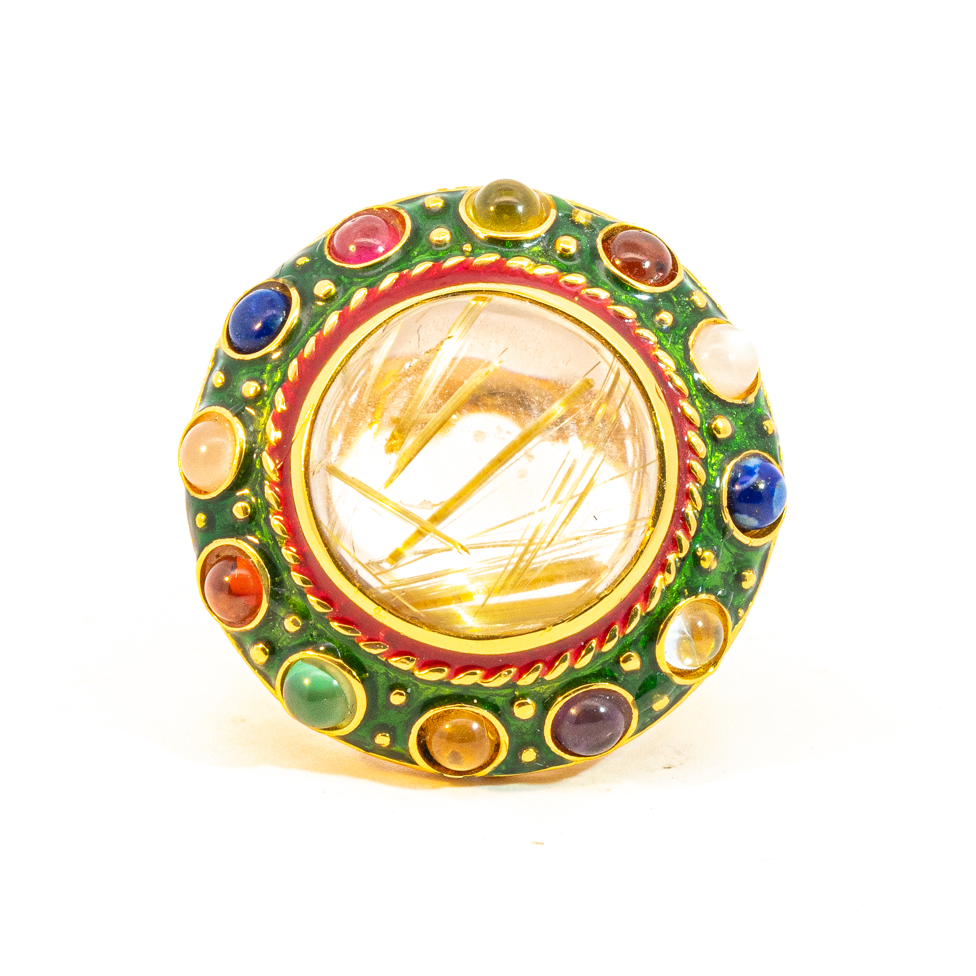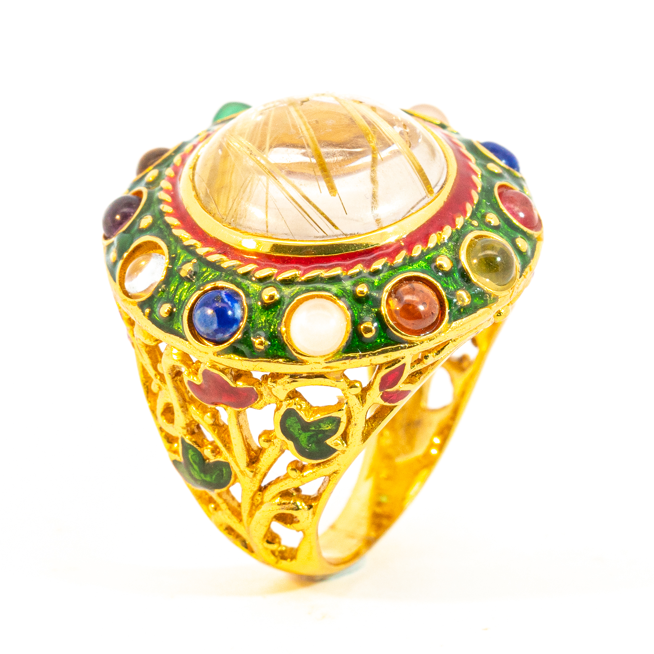 Sterling silver jewelry with 22k gold plated, natural stone and enamel.