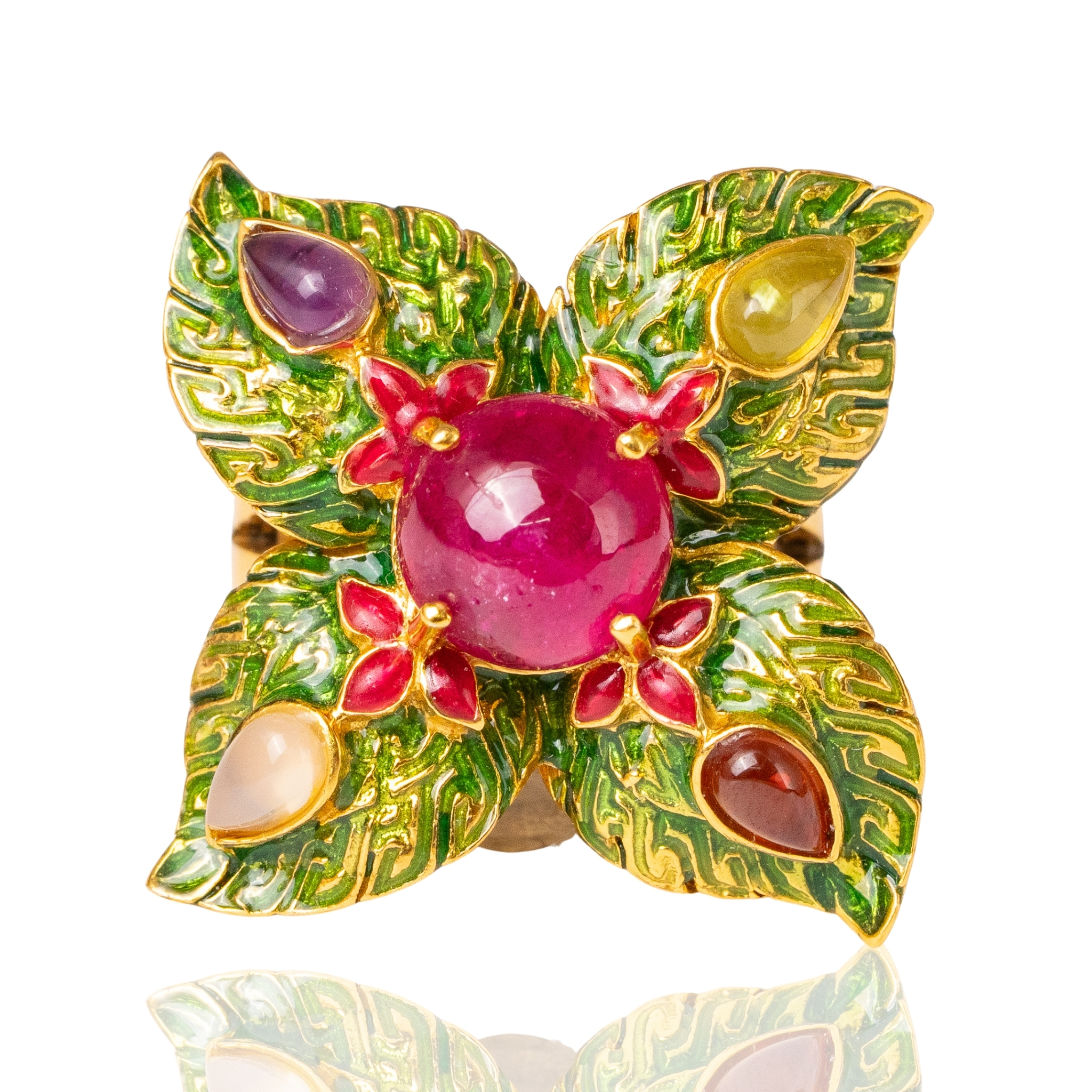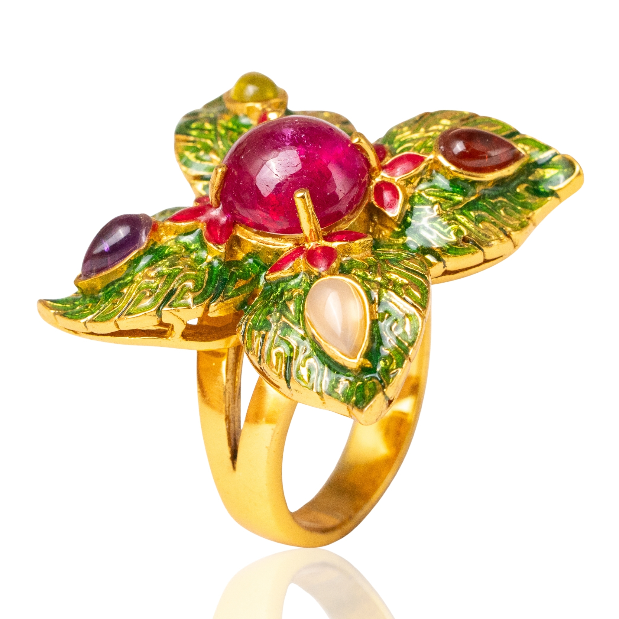 Sterling silver jewelry with 22k gold plated, natural stone and enamel.