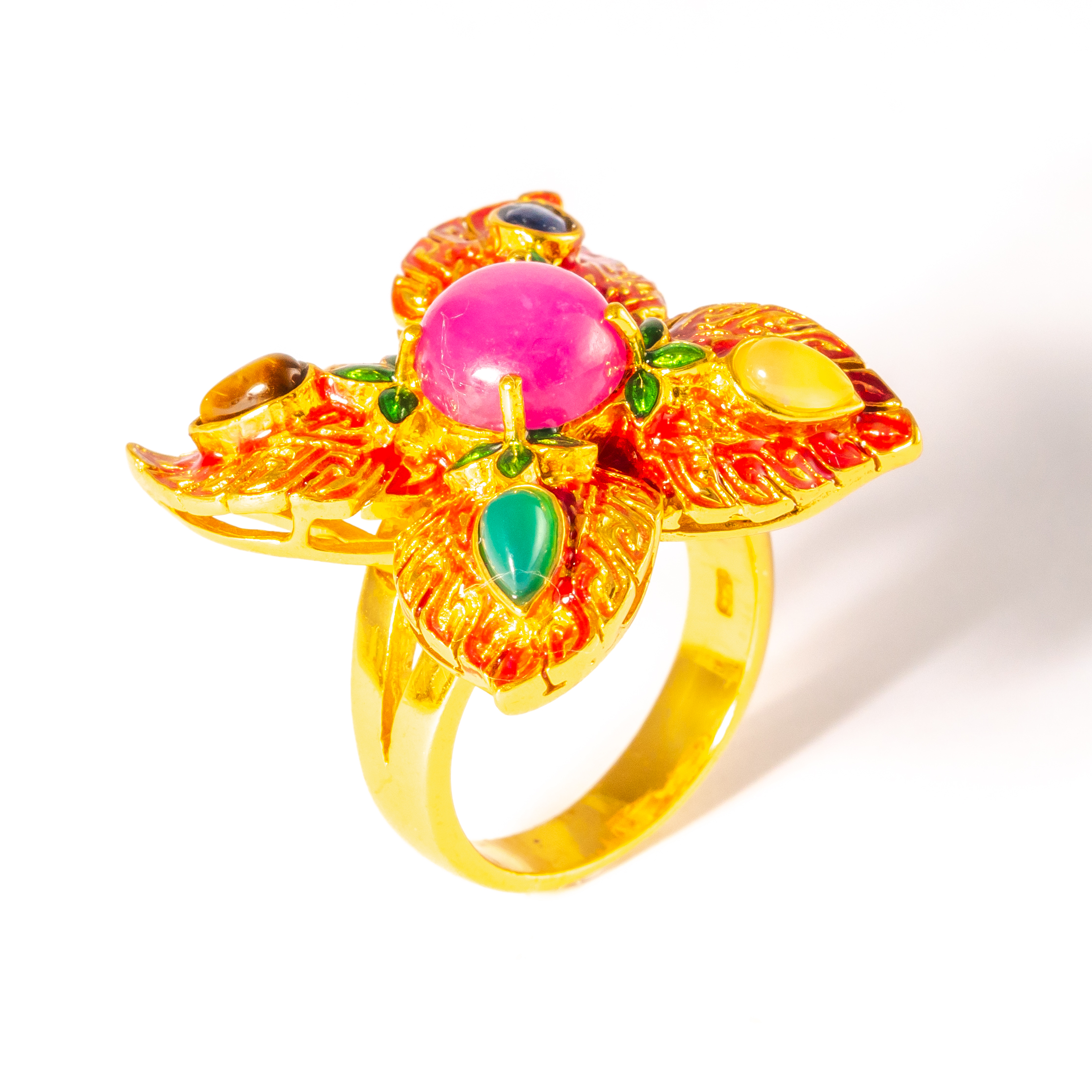 Sterling silver jewelry with 22k gold plated, natural stone and enamel.