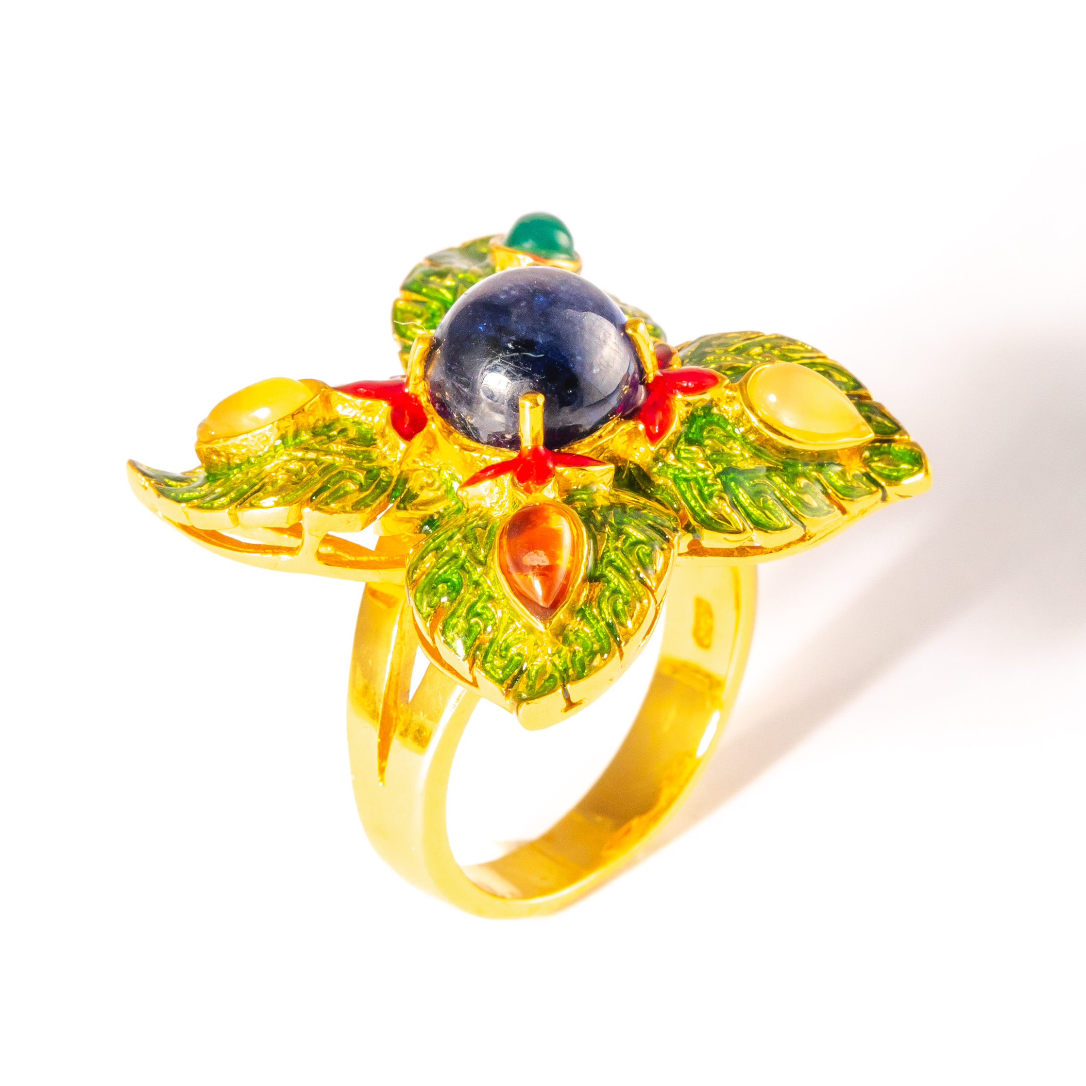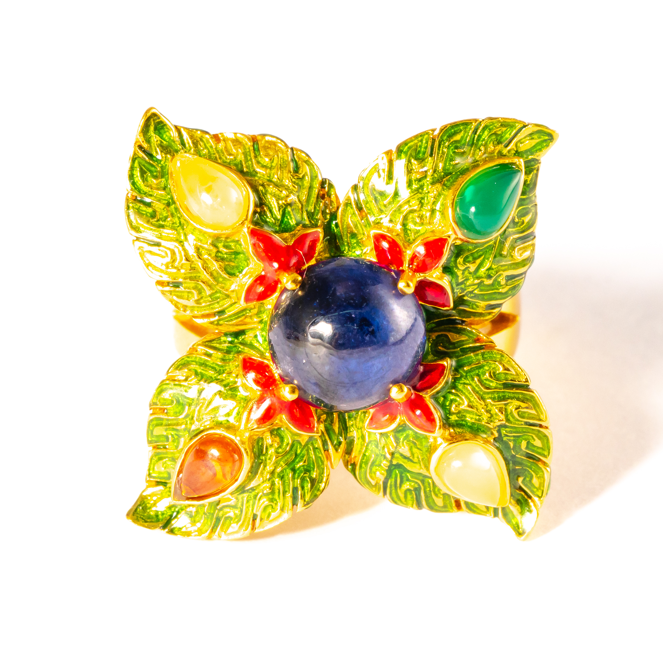 Sterling silver jewelry with 22k gold plated, natural stone and enamel.