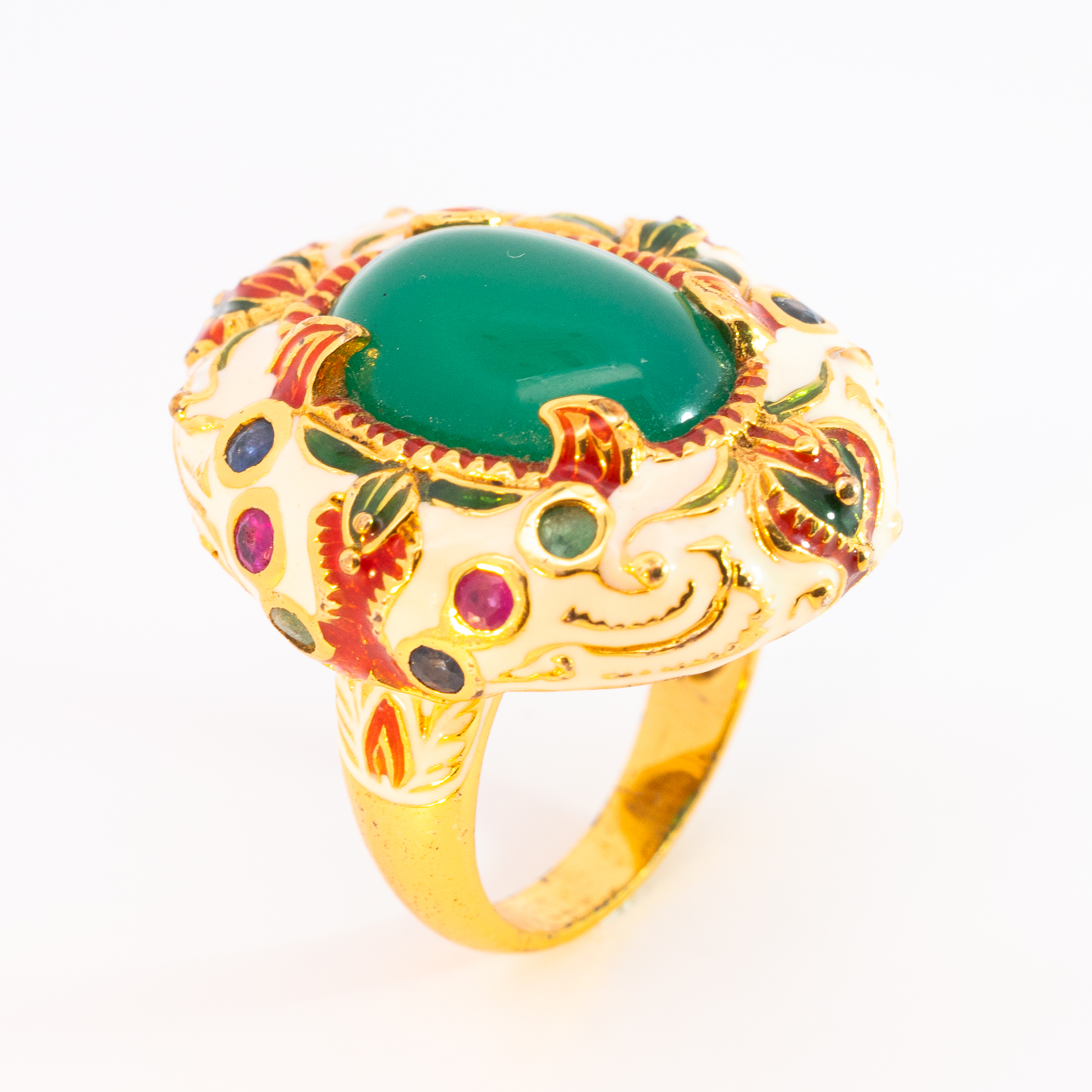 Sterling silver jewelry with 22k gold plated, natural stone and enamel.