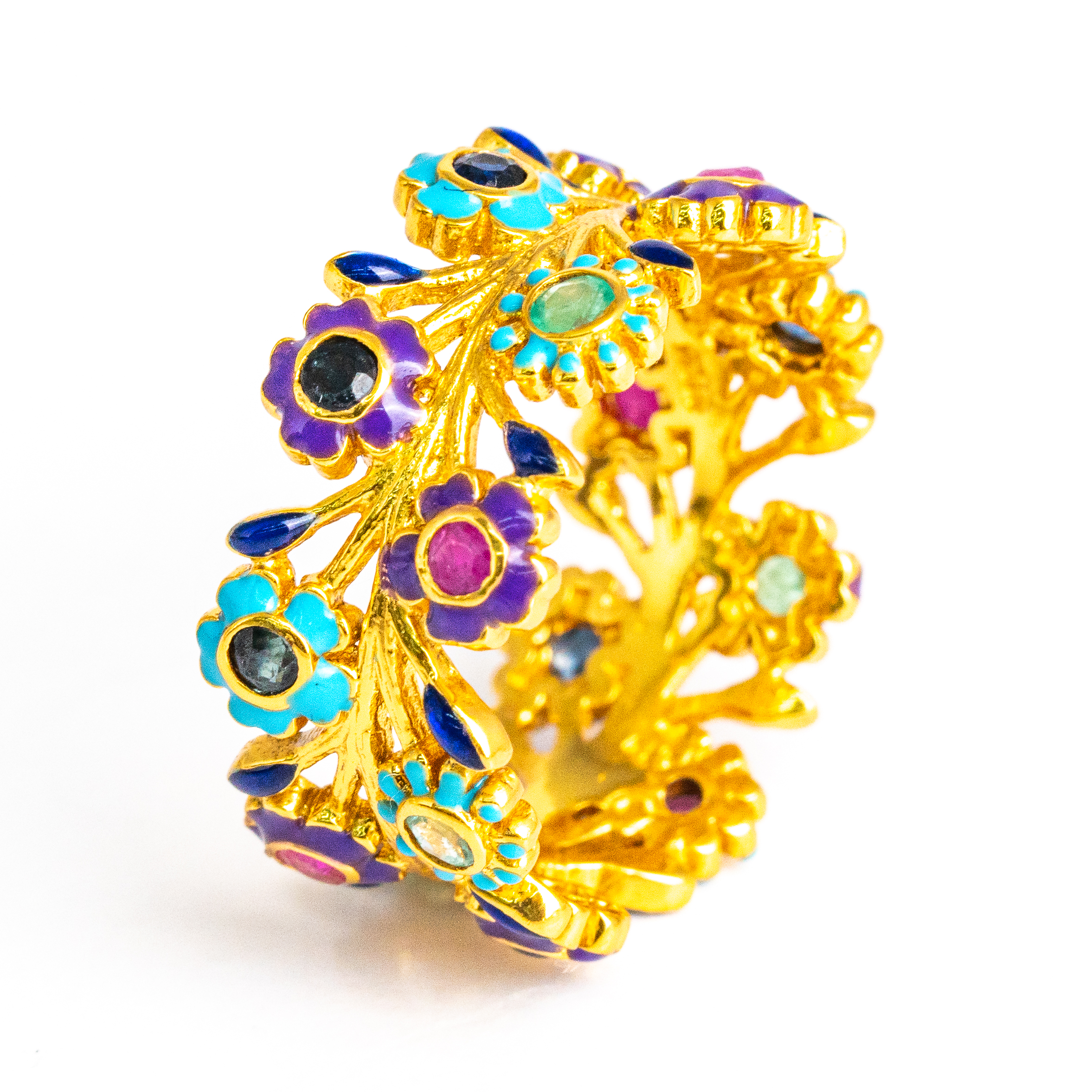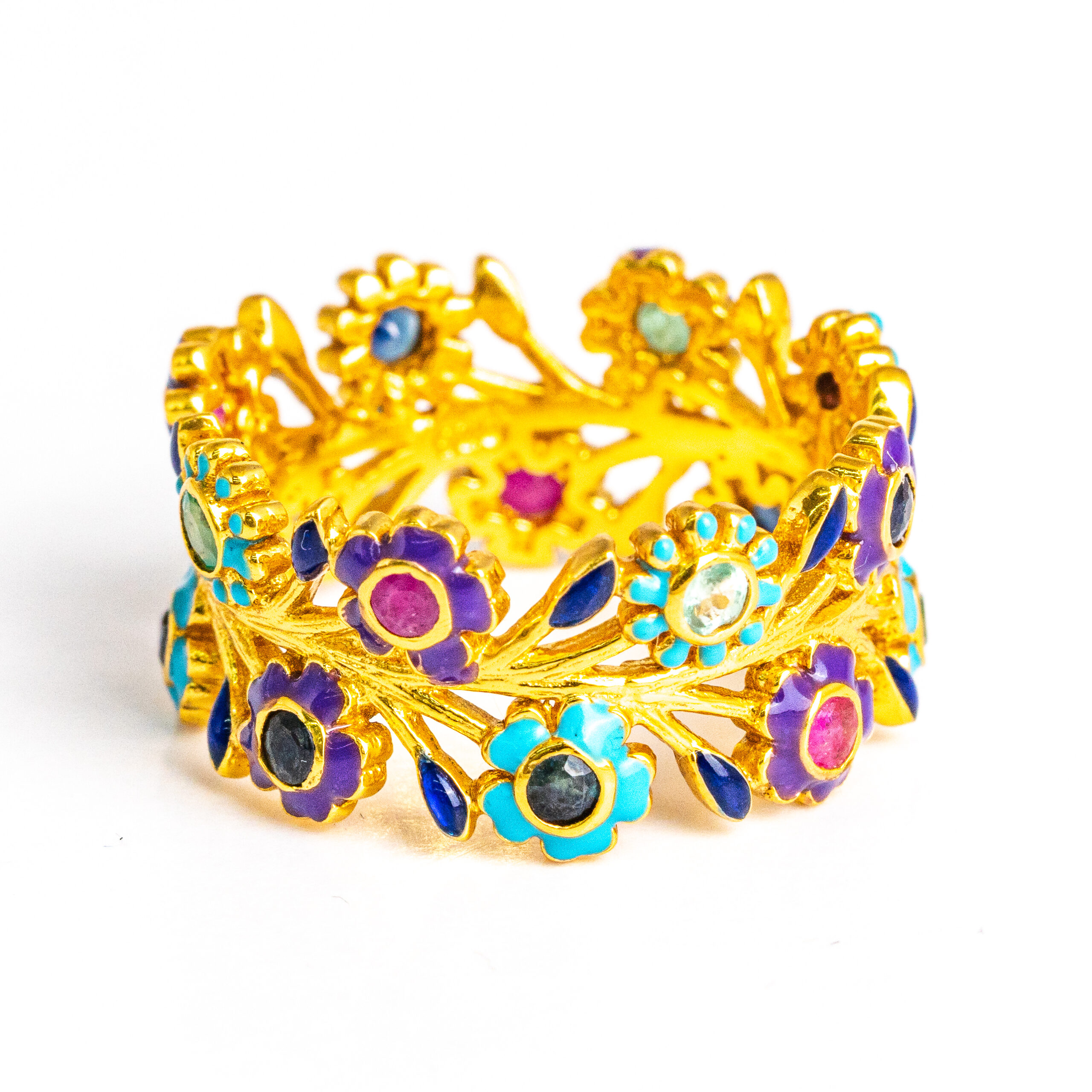 Sterling silver jewelry with 22k gold plated, natural stone and enamel.