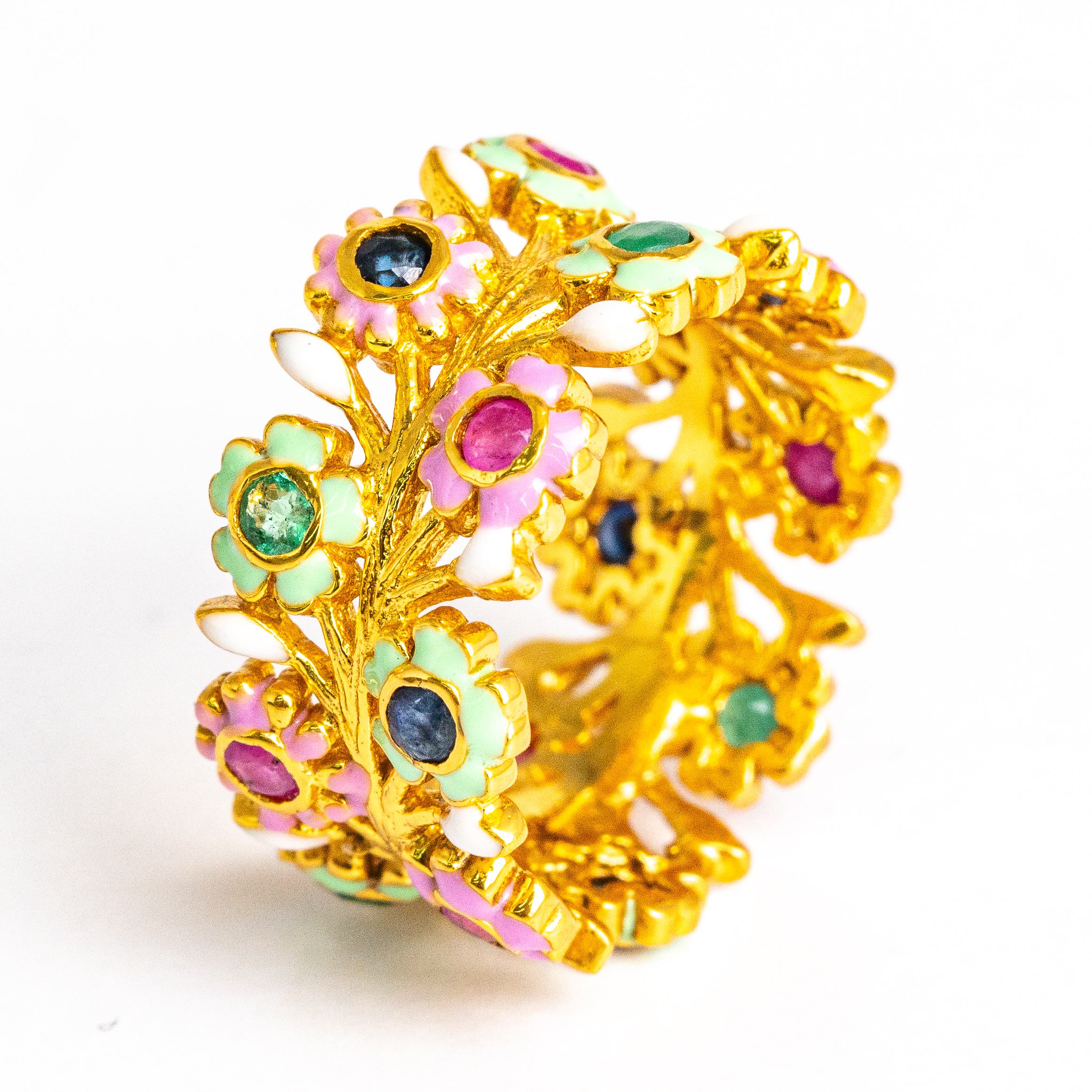 Sterling silver jewelry with 22k gold plated, natural stone and enamel.