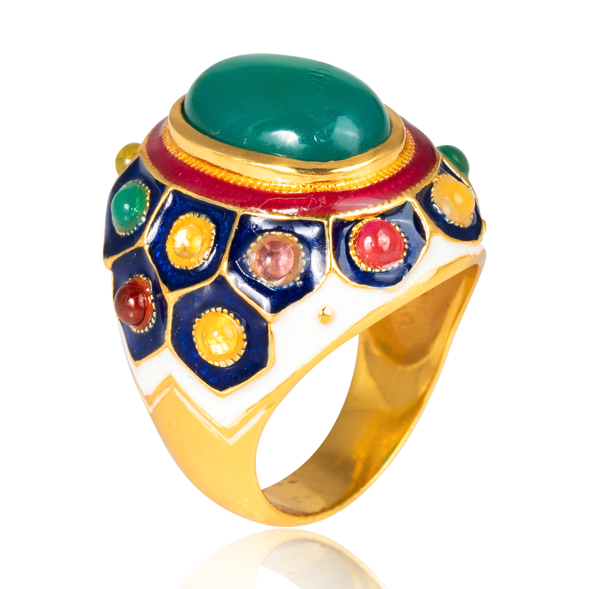 Sterling silver jewelry with 22k gold plated, natural stone and enamel.